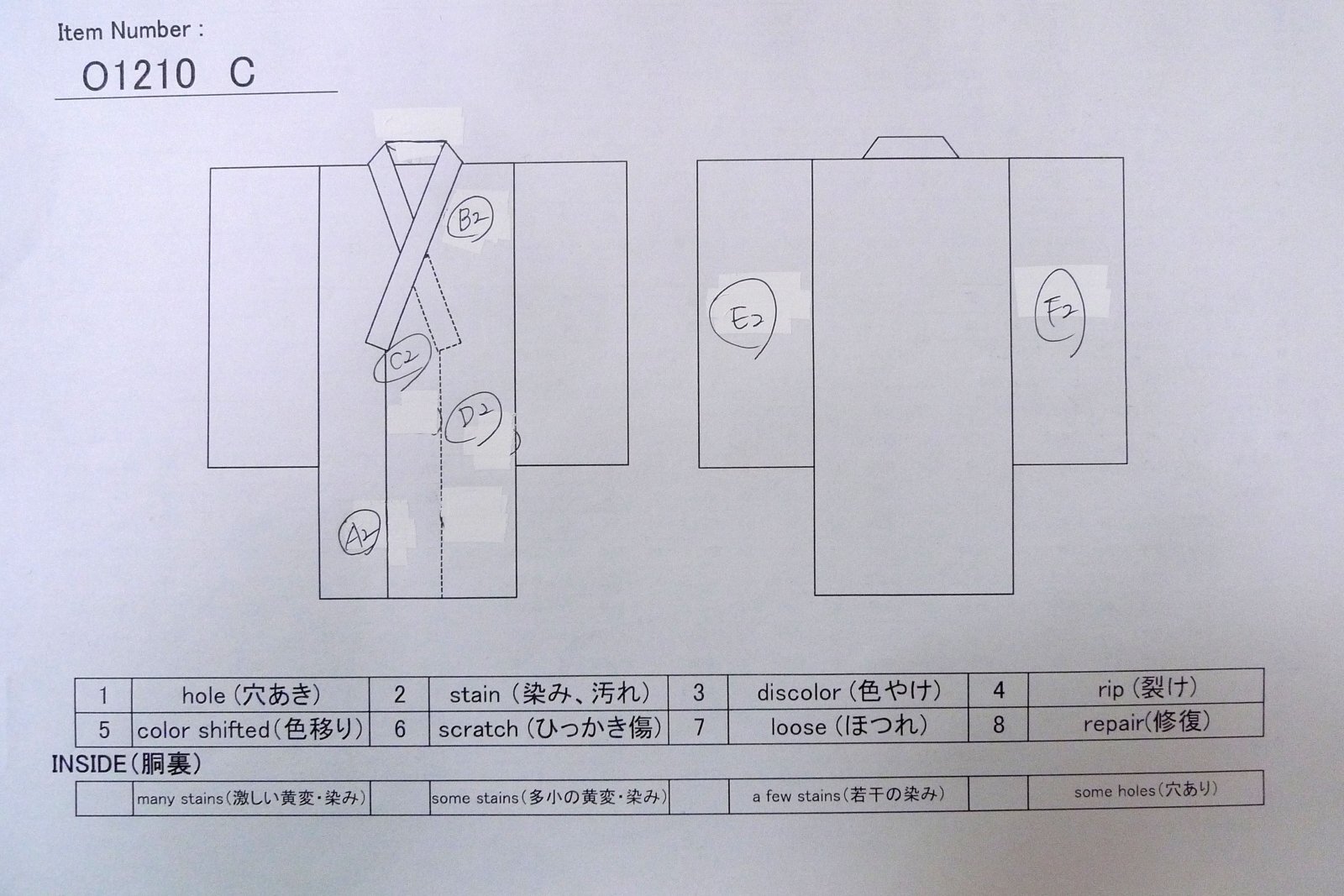 その他 : 裏:染み多数・激しい黄変あり。