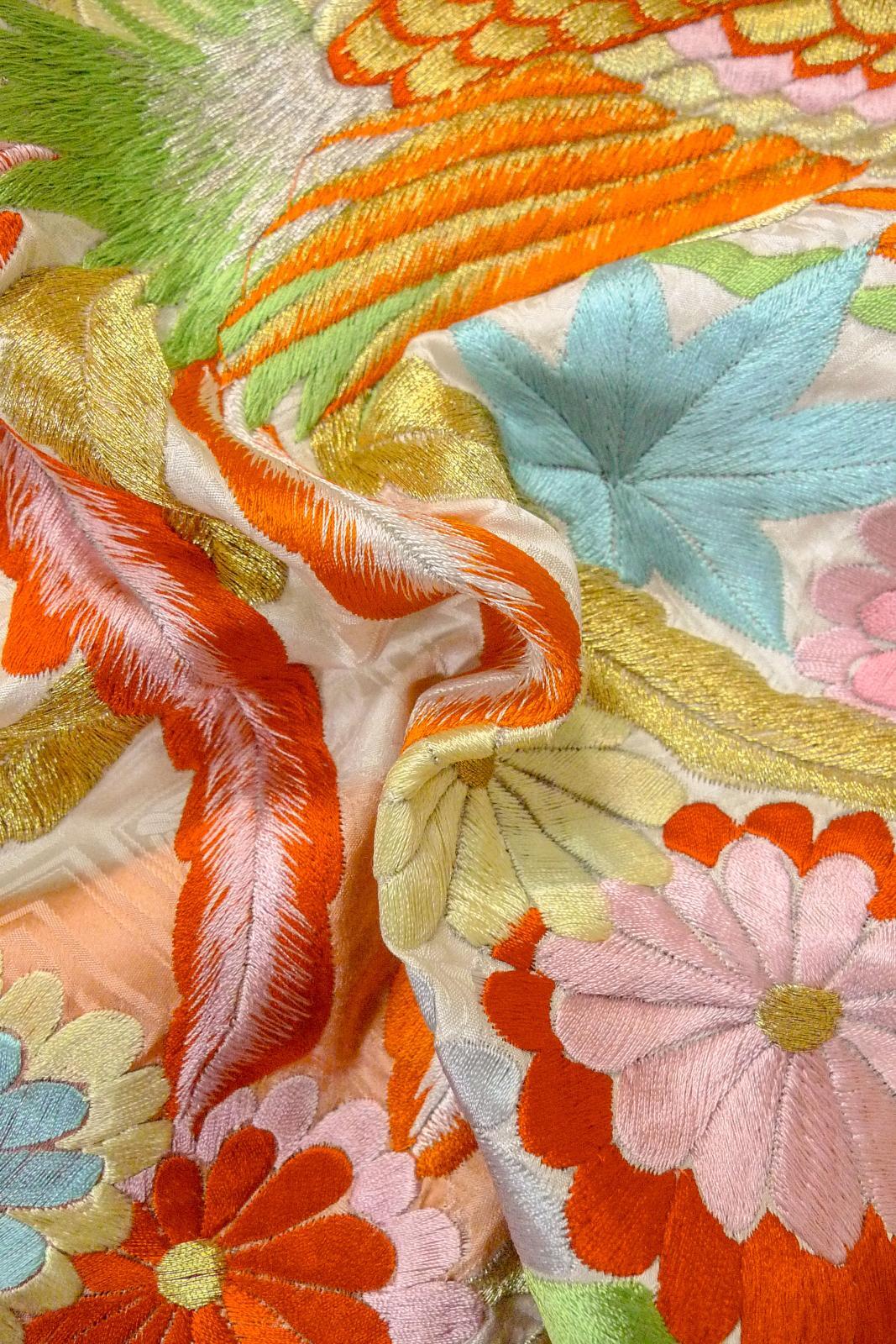 O1225F 女性用 女の子用着物 シルク(正絹) 白, 菊 【中古】【USED】【リサイクル】 ★☆☆☆☆【O1225F】