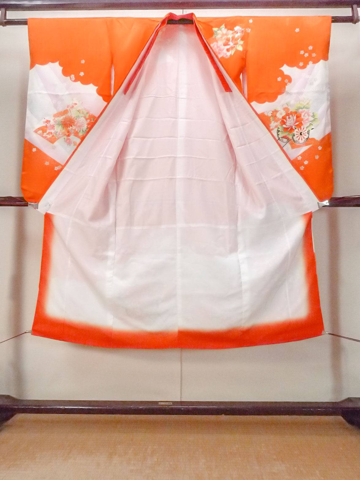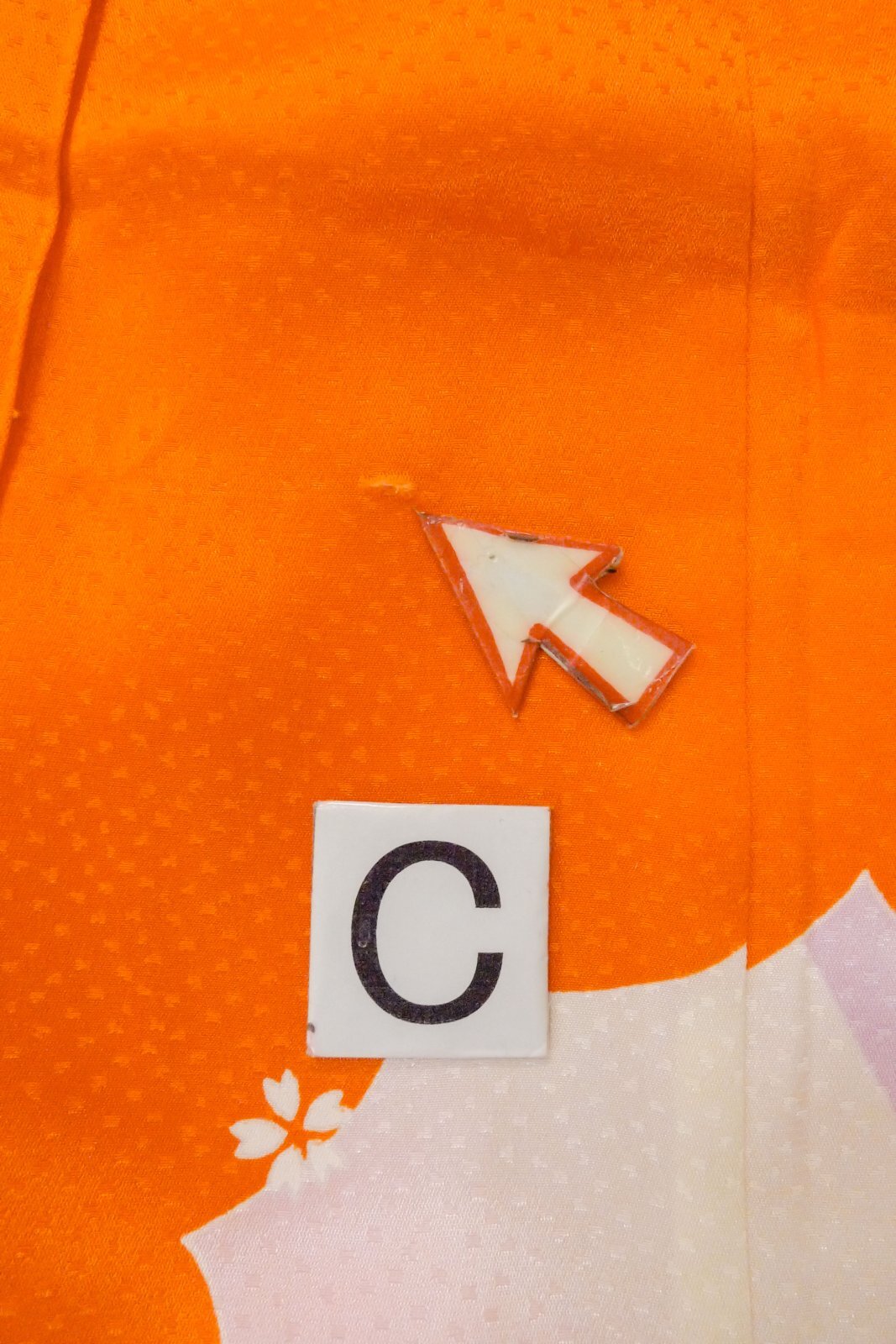 O1225H 女性用 女の子用着物 シルク(正絹) 鮮やか橙色, 桜 【中古】【USED】【リサイクル】 ★☆☆☆☆【O1225H】