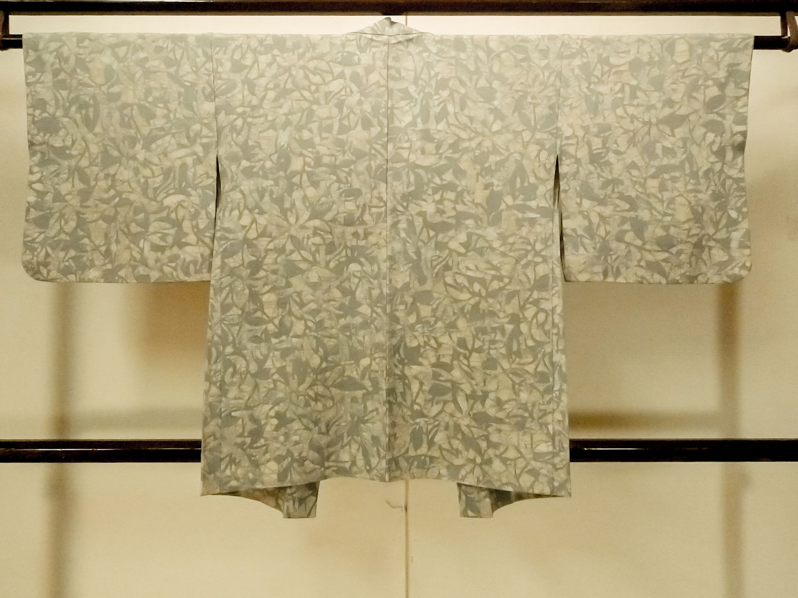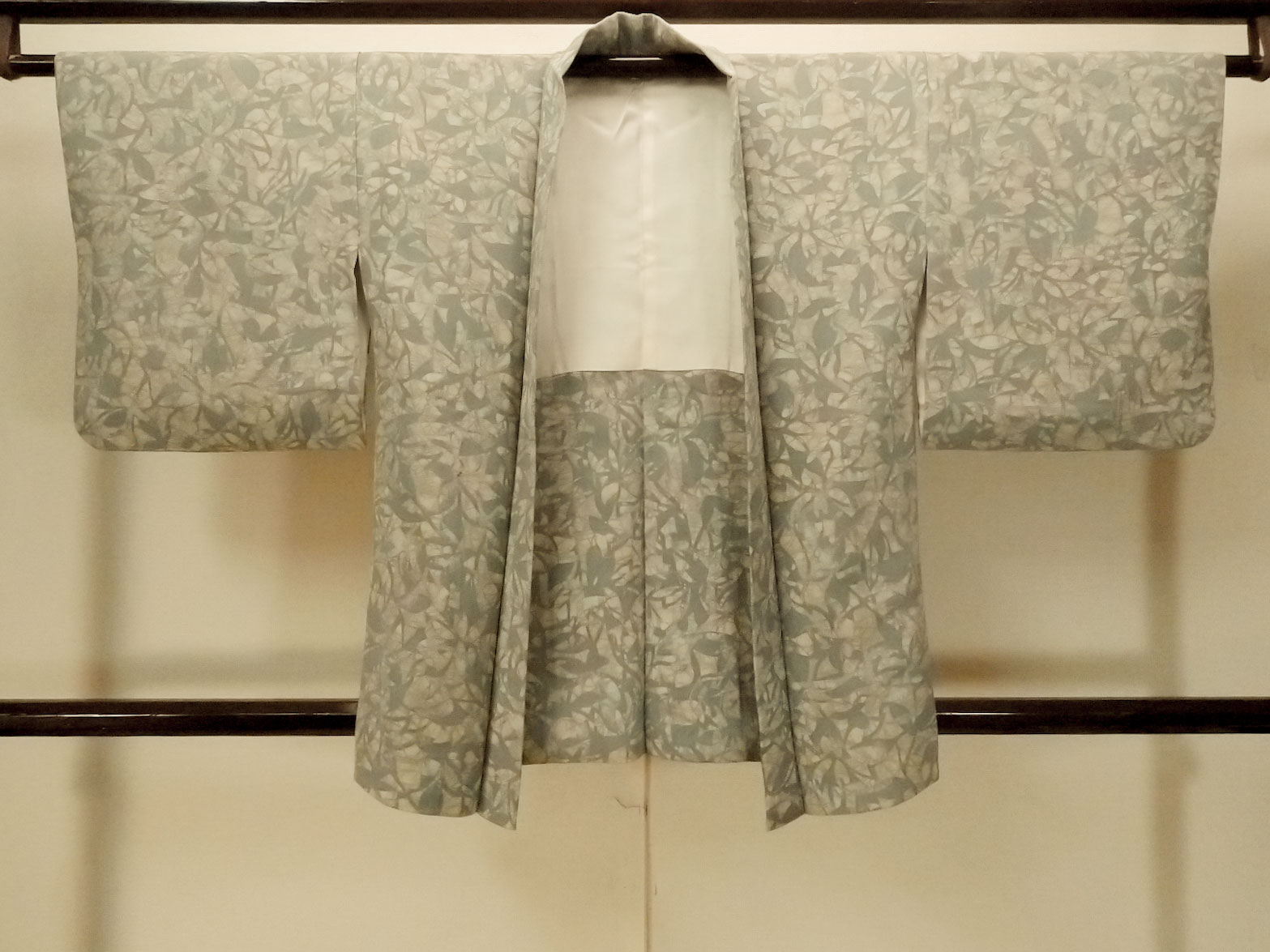P0109W 女性用 羽織 シルク(正絹) 薄い灰色がかった水色, 抽象的模様 【中古】【USED】【リサイクル】 ★★☆☆☆【P0109W】