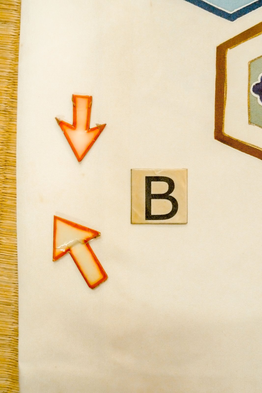 装飾 : 金ペイント、 金巻刺繍 / 手縫い