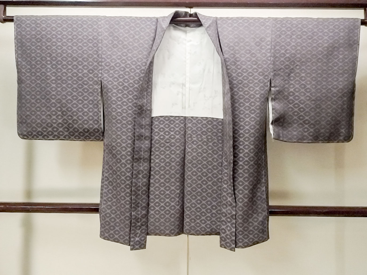 P0123F 女性用 羽織 シルク(正絹) 灰色がかった淡い紫色, 菱 【中古】【USED】【リサイクル】 ★★☆☆☆【P0123F】 [P0123F]
