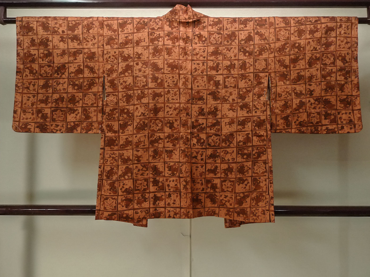 P0123J 女性用 羽織 シルク(正絹) 深い橙色, もみじ 【中古】【USED】【リサイクル】 ★★★★☆【P0123J】