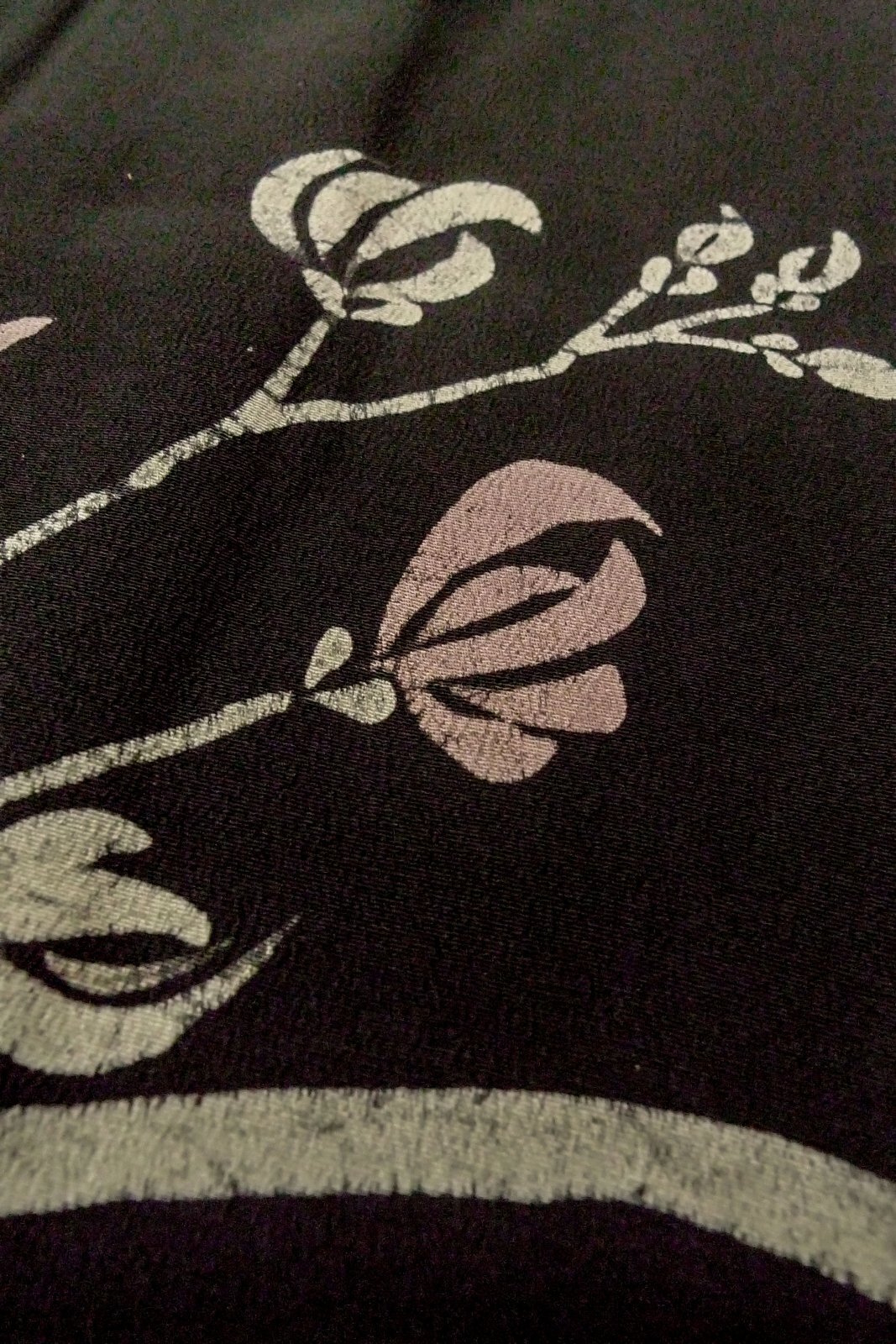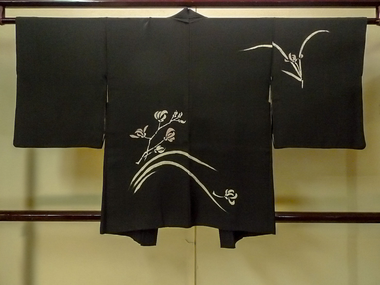 P0123K 女性用 羽織 シルク(正絹) 黒, 花 【中古】【USED】【リサイクル】 ★★★★☆【P0123K】 [P0123K]