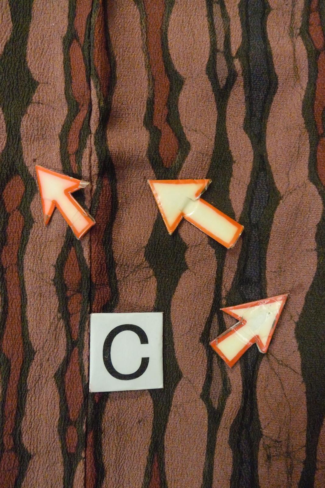 ![]() | 袖から袖 : | 51.5" | 131cm (裄:65.5cm / 1 尺 7 寸 3 分) | |