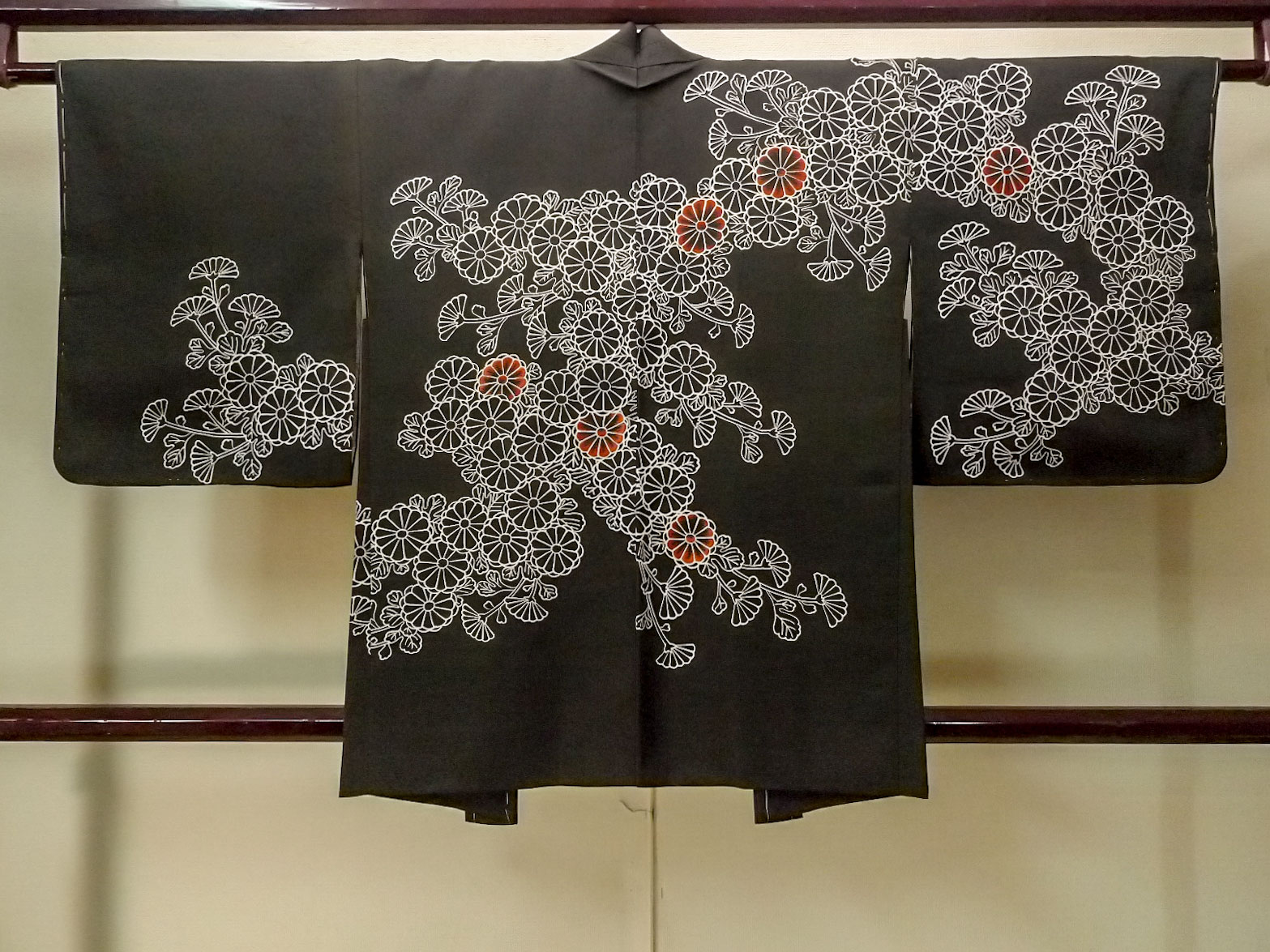 P0123N 女性用 羽織 シルク(正絹) 黒, 菊 【中古】【USED】【リサイクル】 ★★☆☆☆【P0123N】