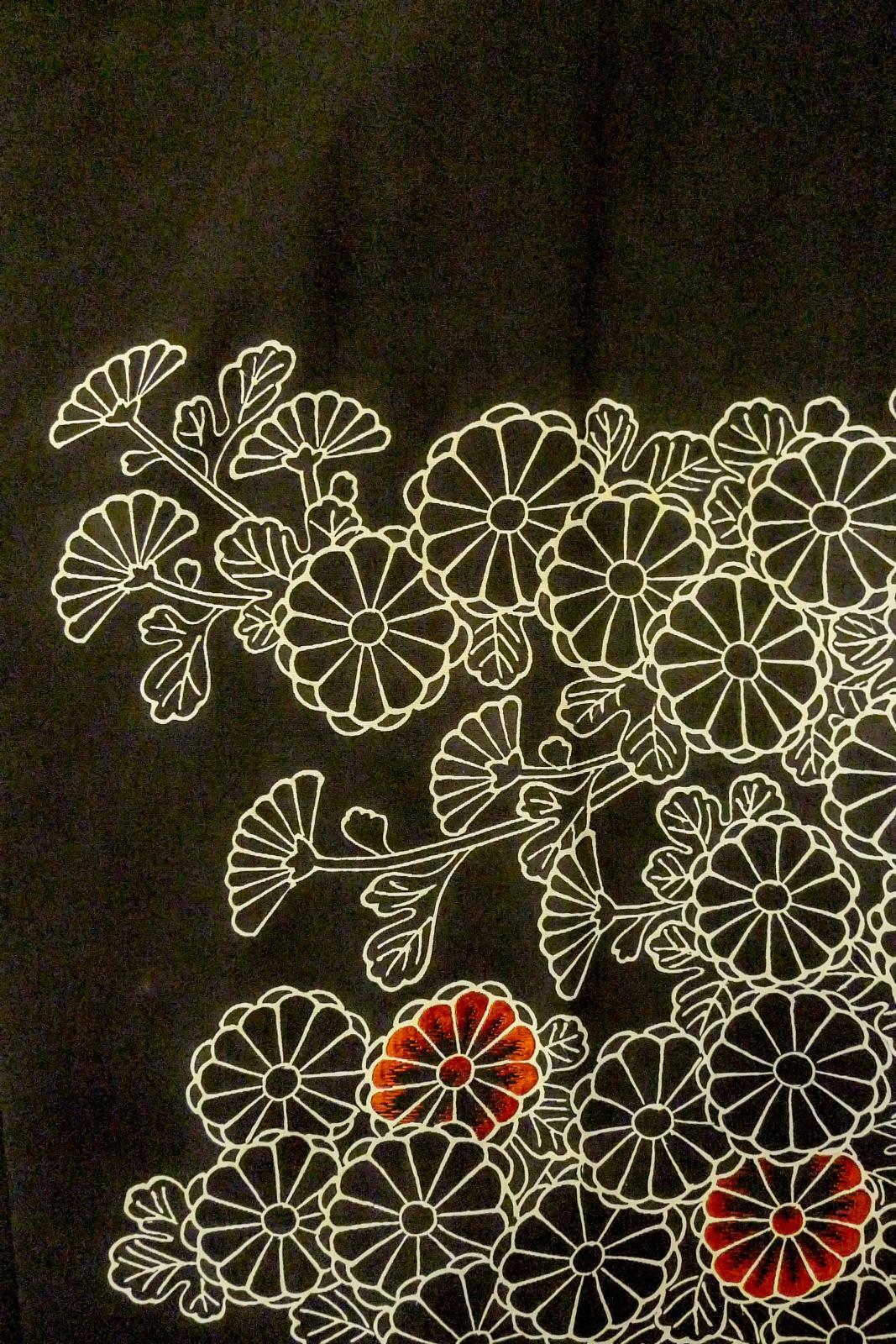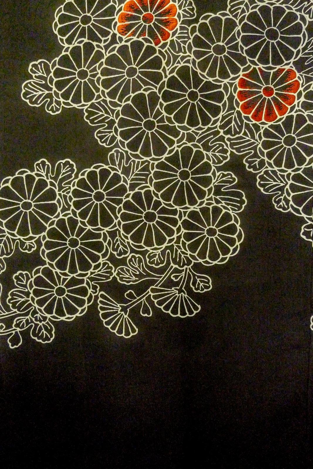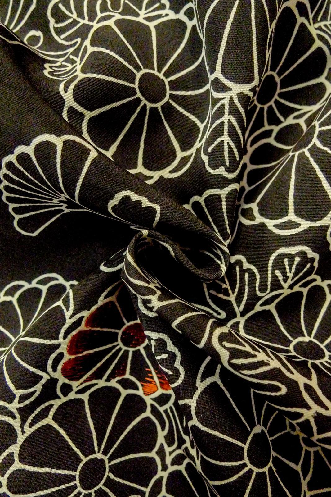 P0123N 女性用 羽織 シルク(正絹) 黒, 菊 【中古】【USED】【リサイクル】 ★★☆☆☆【P0123N】 [P0123N]