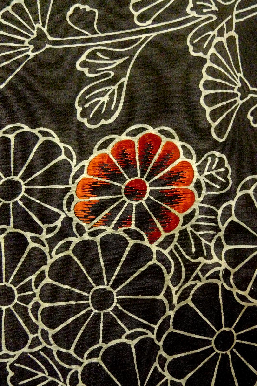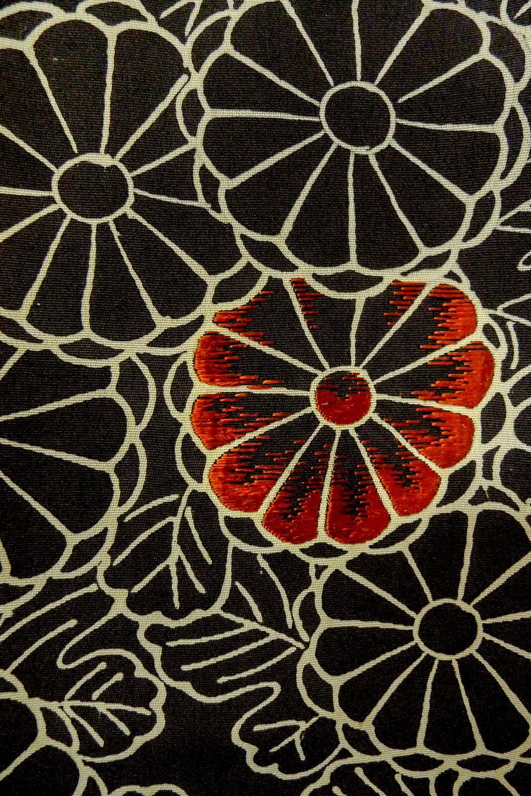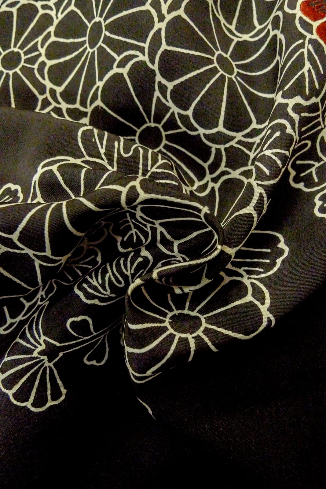 P0123N 女性用 羽織 シルク(正絹) 黒, 菊 【中古】【USED】【リサイクル】 ★★☆☆☆【P0123N】 [P0123N]