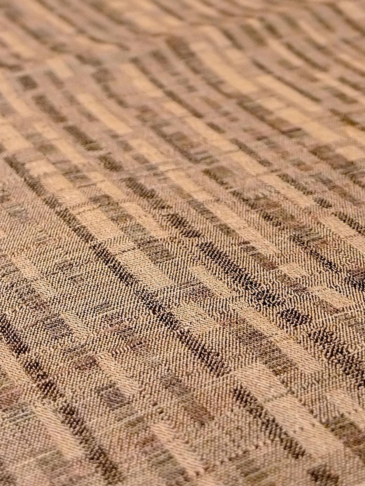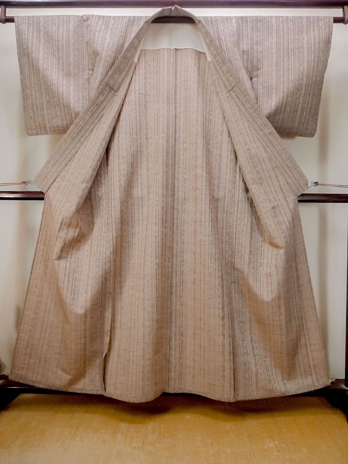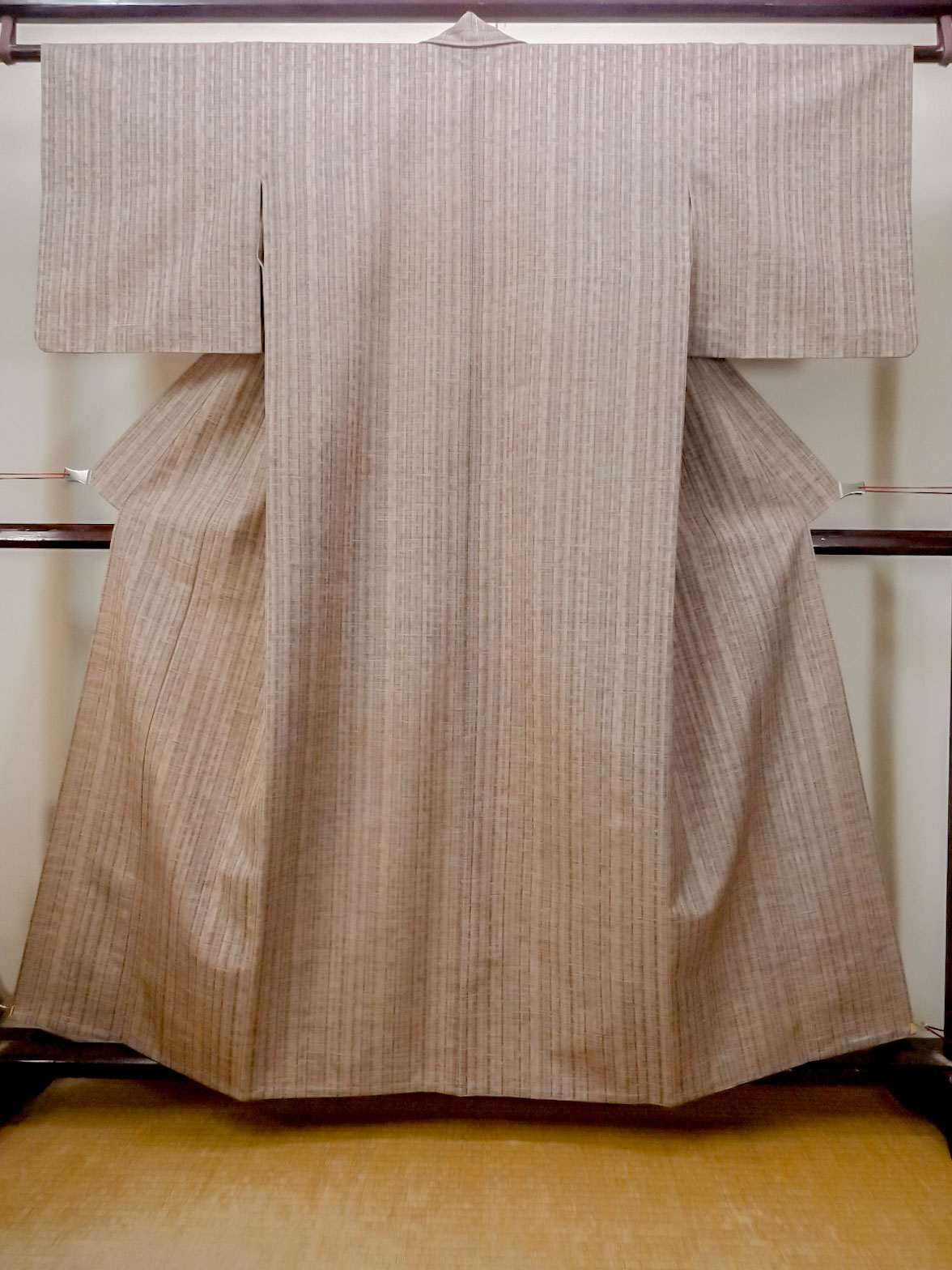 N0312H 女性用 単衣 シルク(正絹) 淡い 薄い 茶色, チェック柄 【中古】 【USED】 【リサイクル】 ★★☆☆☆ [N0312H]