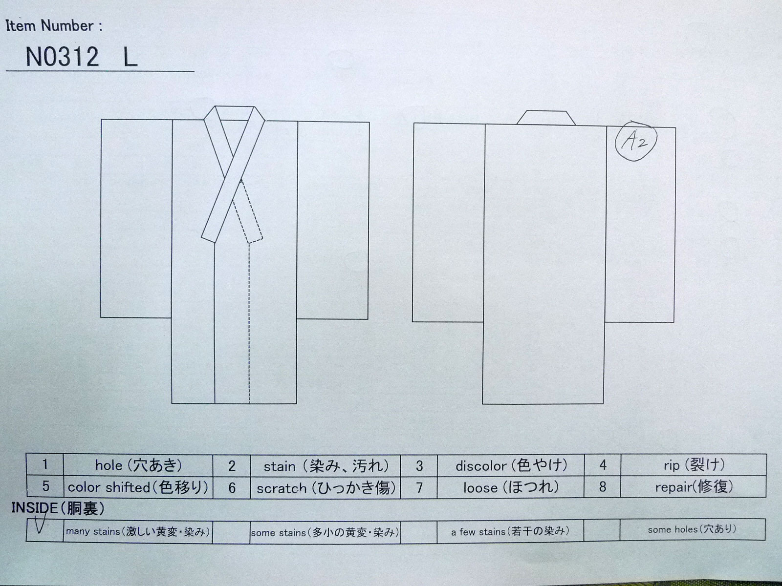 こちらの商品は中古の古着になります。シミ・傷等の写真はあくまでもご参考程度にお願いします。写真に写っていないダメージがありましても、「中古品」「難あり」「訳あり」ということをご了解の上、ノークレームでご購入下さいませ。