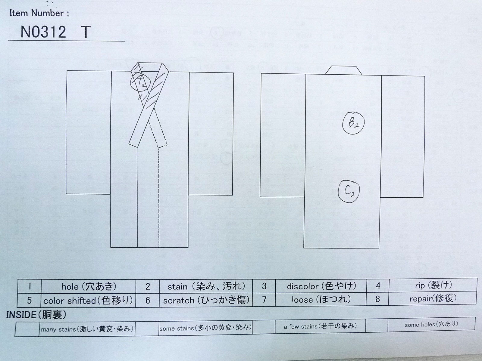 こちらの商品は中古の古着になります。シミ・傷等の写真はあくまでもご参考程度にお願いします。写真に写っていないダメージがありましても、「中古品」「難あり」「訳あり」ということをご了解の上、ノークレームでご購入下さいませ。