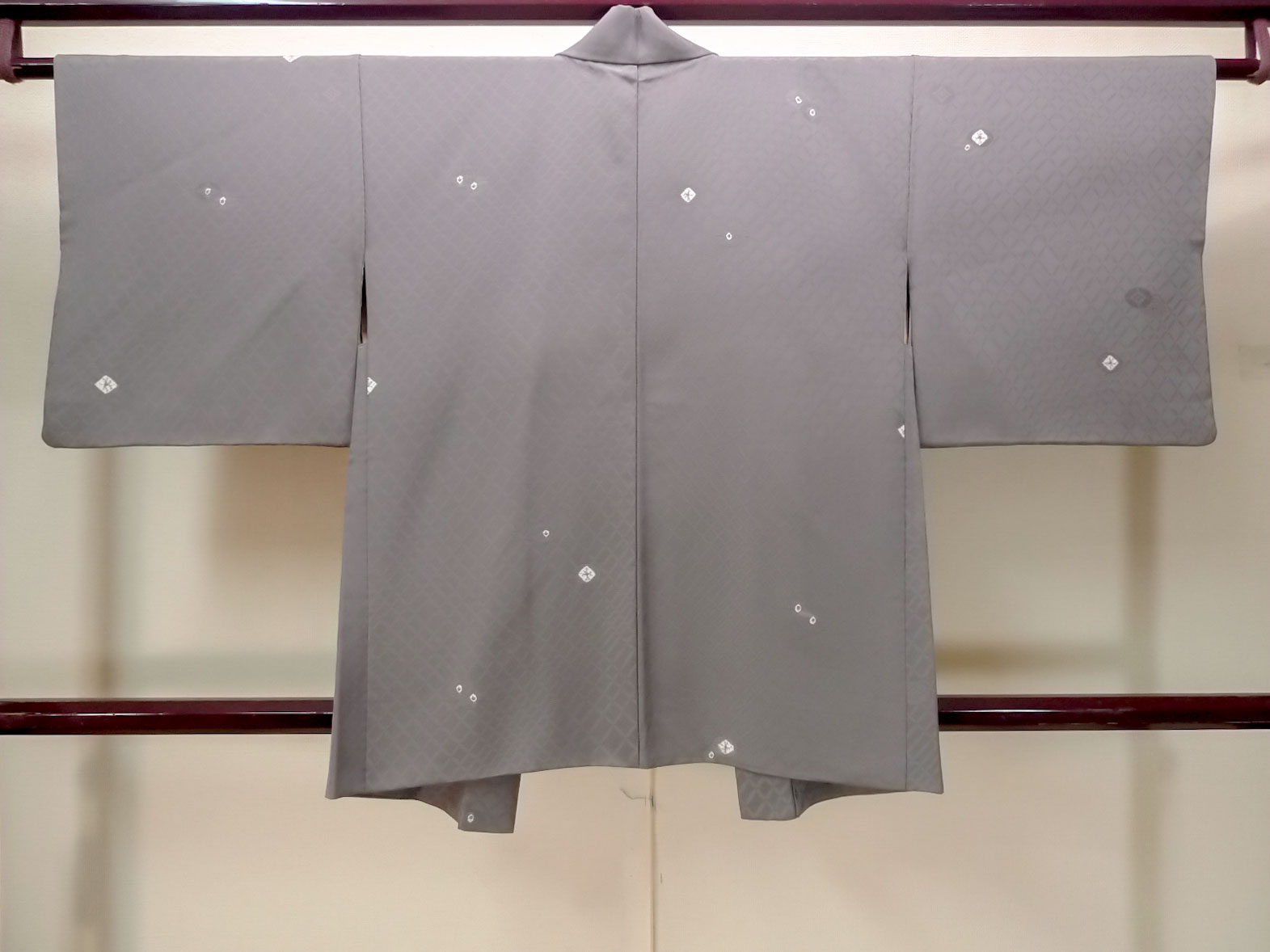 N0529Q 女性用 羽織 シルク(正絹) 灰色, 菱 【中古】 【USED】 【リサイクル】 ★★☆☆☆