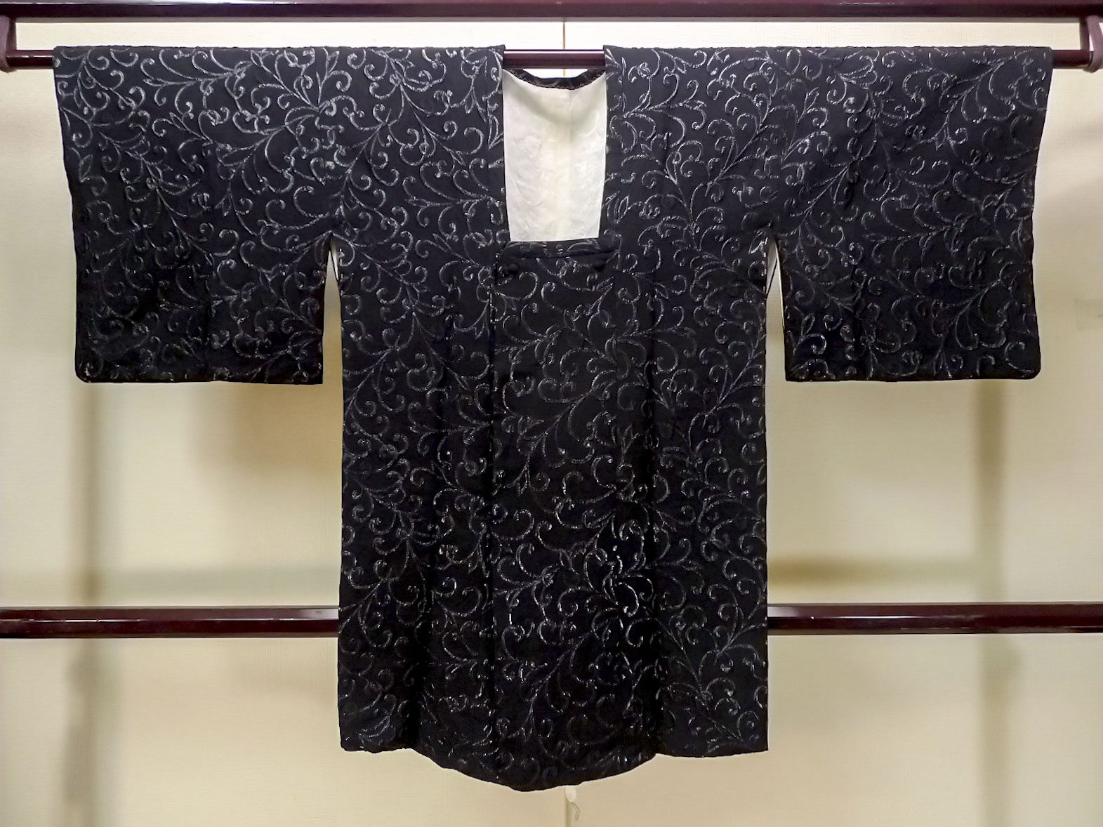 N0529X Mint 女性用 道行 シルク(正絹) 黒, 唐草 【中古】 【USED】 【リサイクル】 ★★★★☆