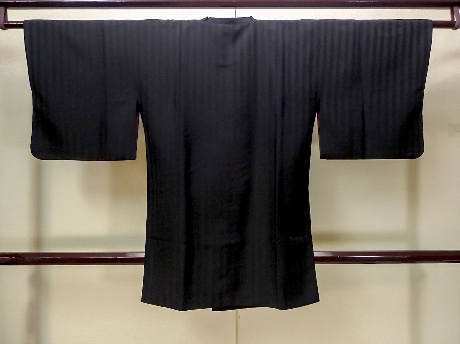 N0529Y 女性用 道行 シルク(正絹) 黒, 縞 【中古】 【USED】 【リサイクル】 ★★★☆☆
