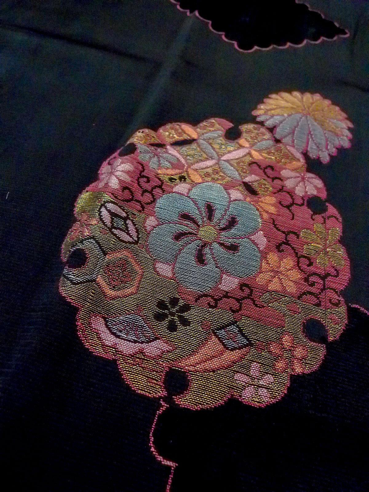 N0530C 女性用 道行 シルク(正絹) 黒, 菊 【中古】 【USED】 【リサイクル】 ★★☆☆☆ [N0530C]