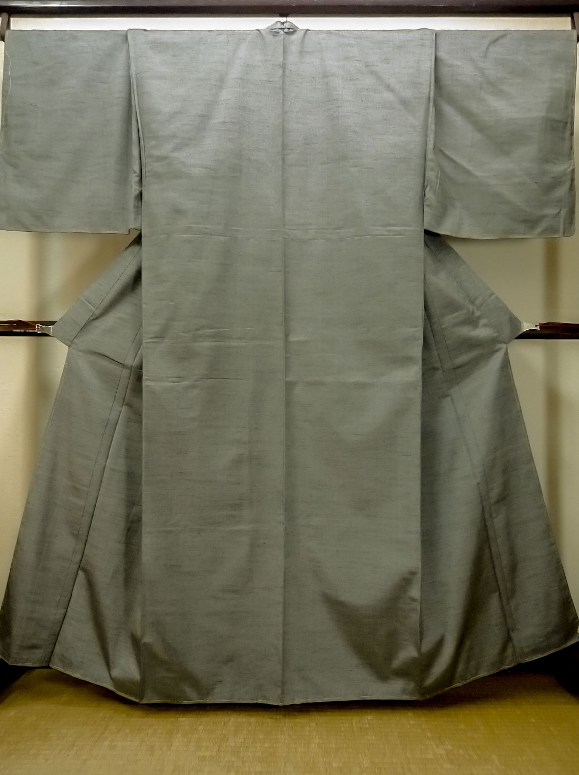 O0312W 男性用着物 結城紬 シルク(正絹) 薄い灰色, 【中古】【USED】【リサイクル】 ★★★★☆【O0312W】