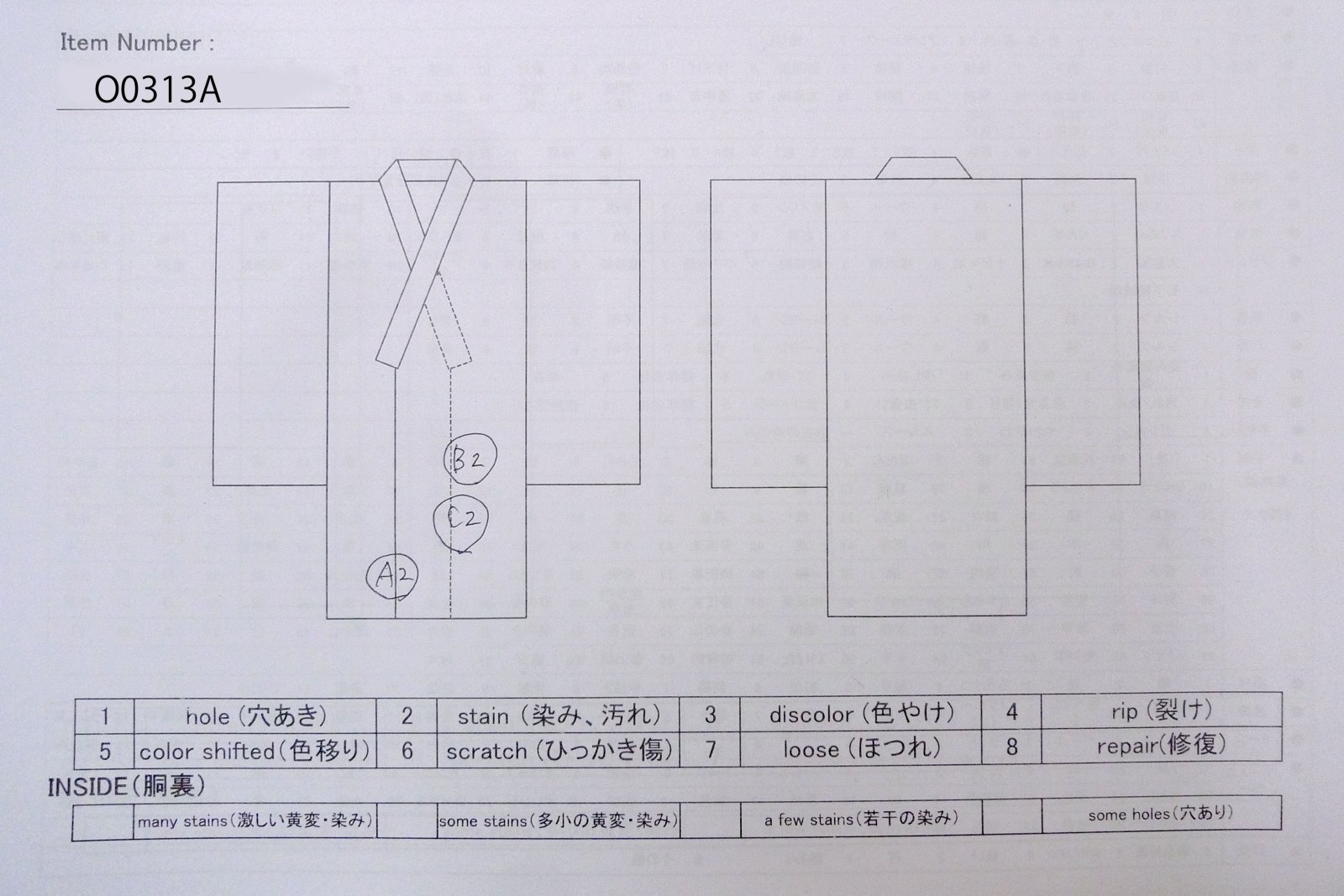 こちらの商品は中古の古着になります。シミ・傷等の写真はあくまでもご参考程度にお願いします。写真に写っていないダメージがありましても、「中古品」「難あり」「訳あり」ということをご了解の上、ノークレームでご購入下さいませ。