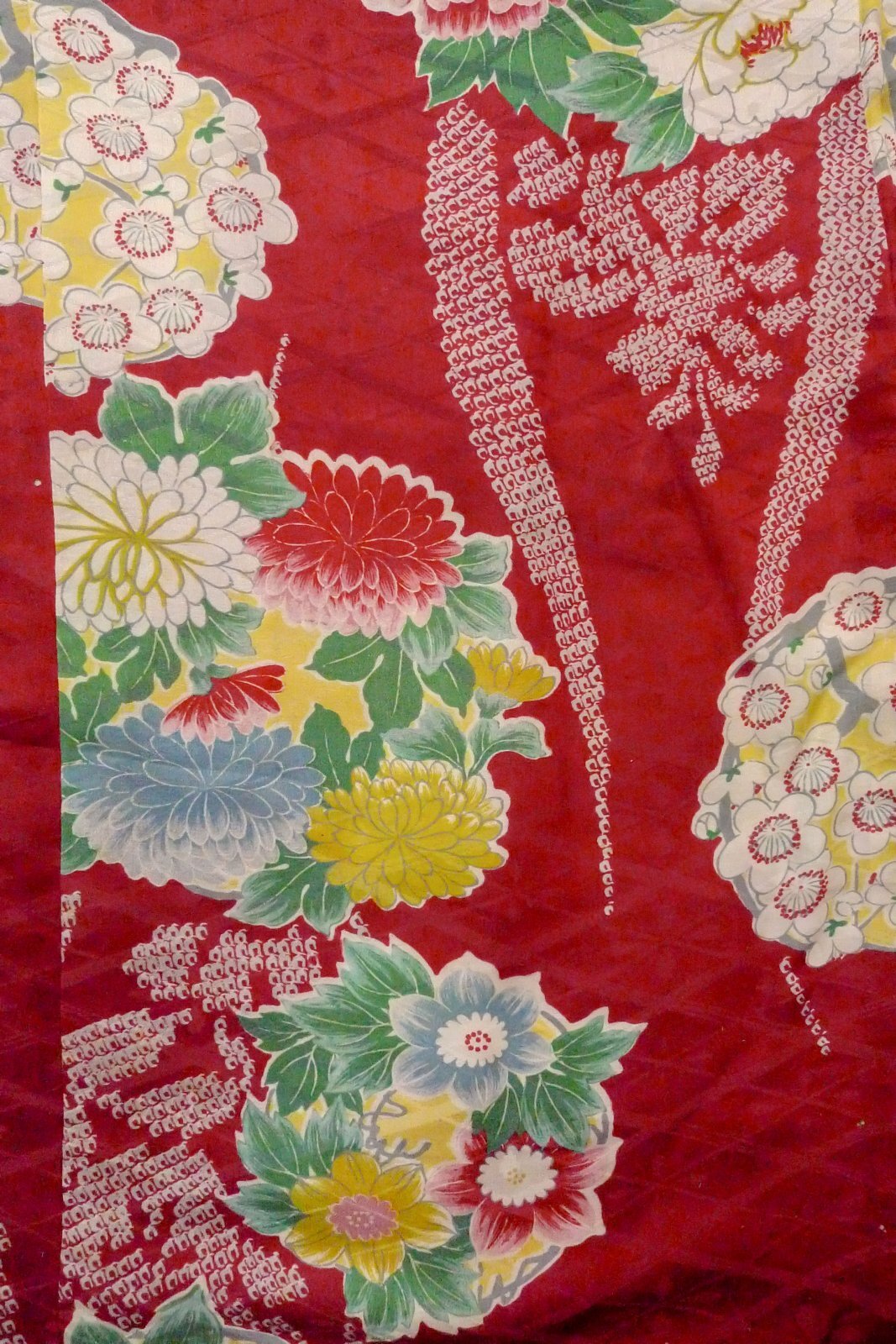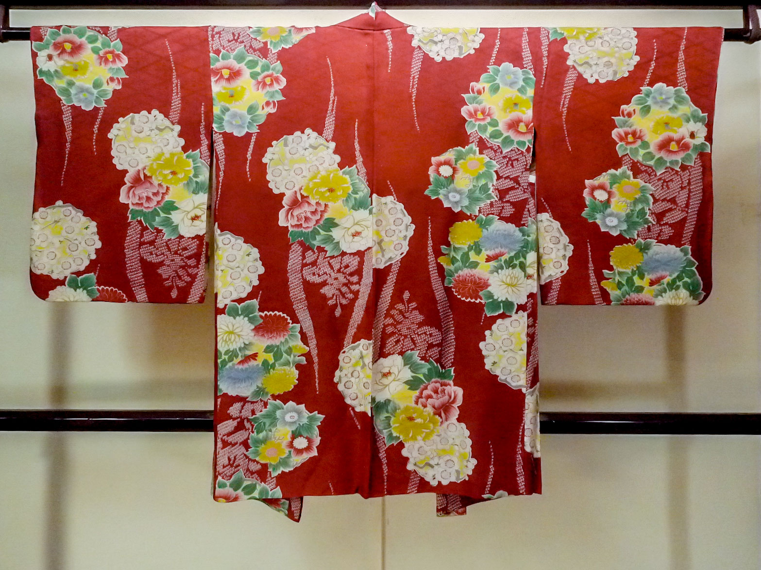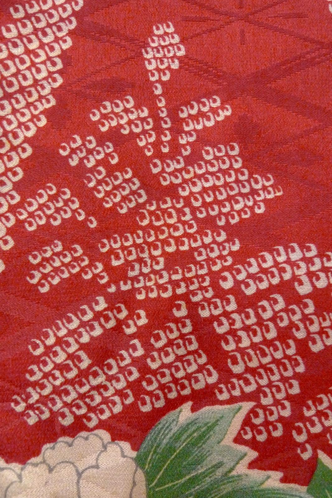 O1205A"女性用 羽織 シルク(正絹) 深い赤色, 花 【中古】【USED】【リサイクル】 ★☆☆☆☆【O1205A】