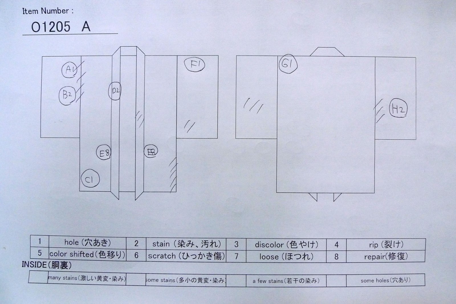 | 身丈[肩から] : | 33" | 身丈:84cm (2 尺 2 寸 2 分) | ||