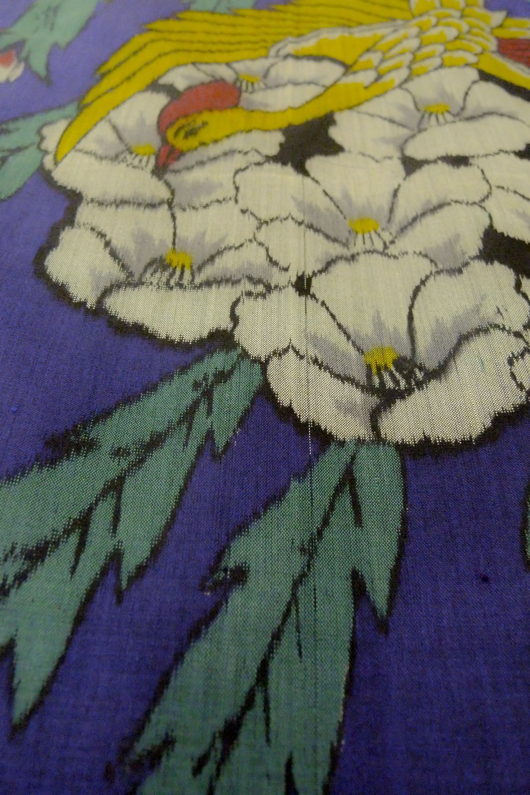 O1205G 女性用 羽織 シルク(正絹) 鮮やか紫色, 花 【中古】【USED】【リサイクル】 ★★★☆☆【O1205G】 [O1205G]