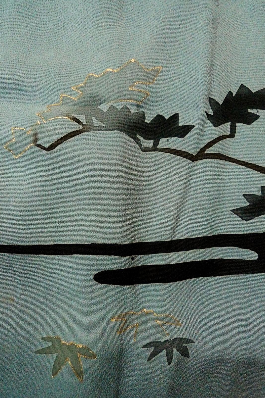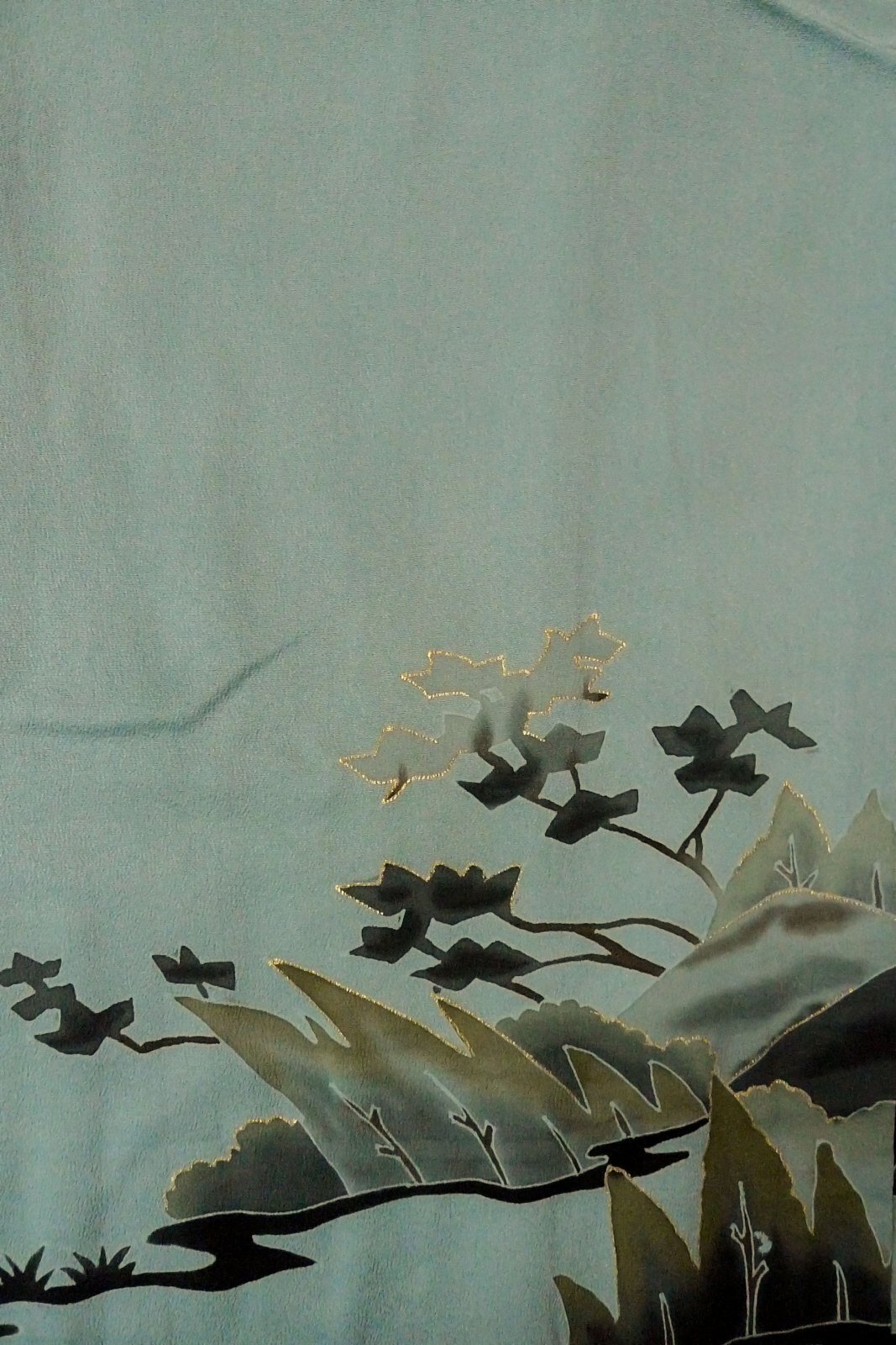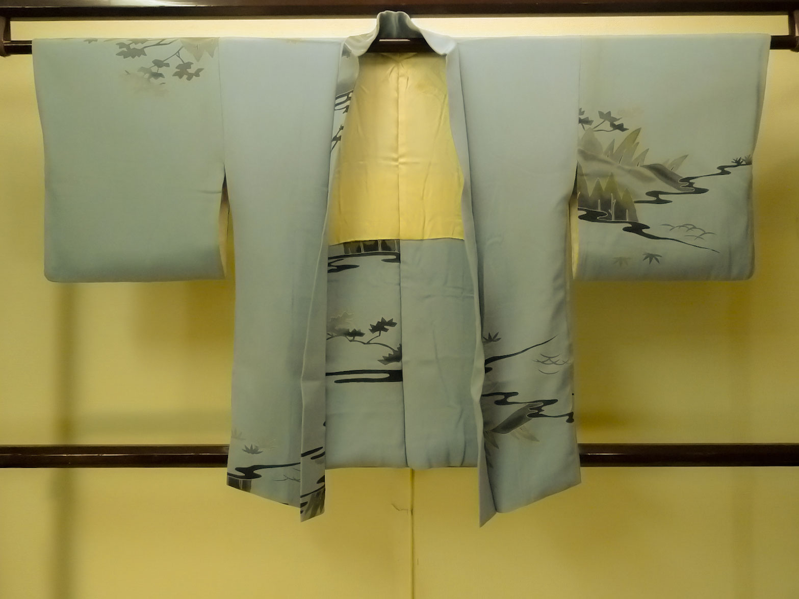 P0123Q 女性用 羽織 シルク(正絹) 灰色がかった水色, 草 【中古】【USED】【リサイクル】 ★★☆☆☆【P0123Q】