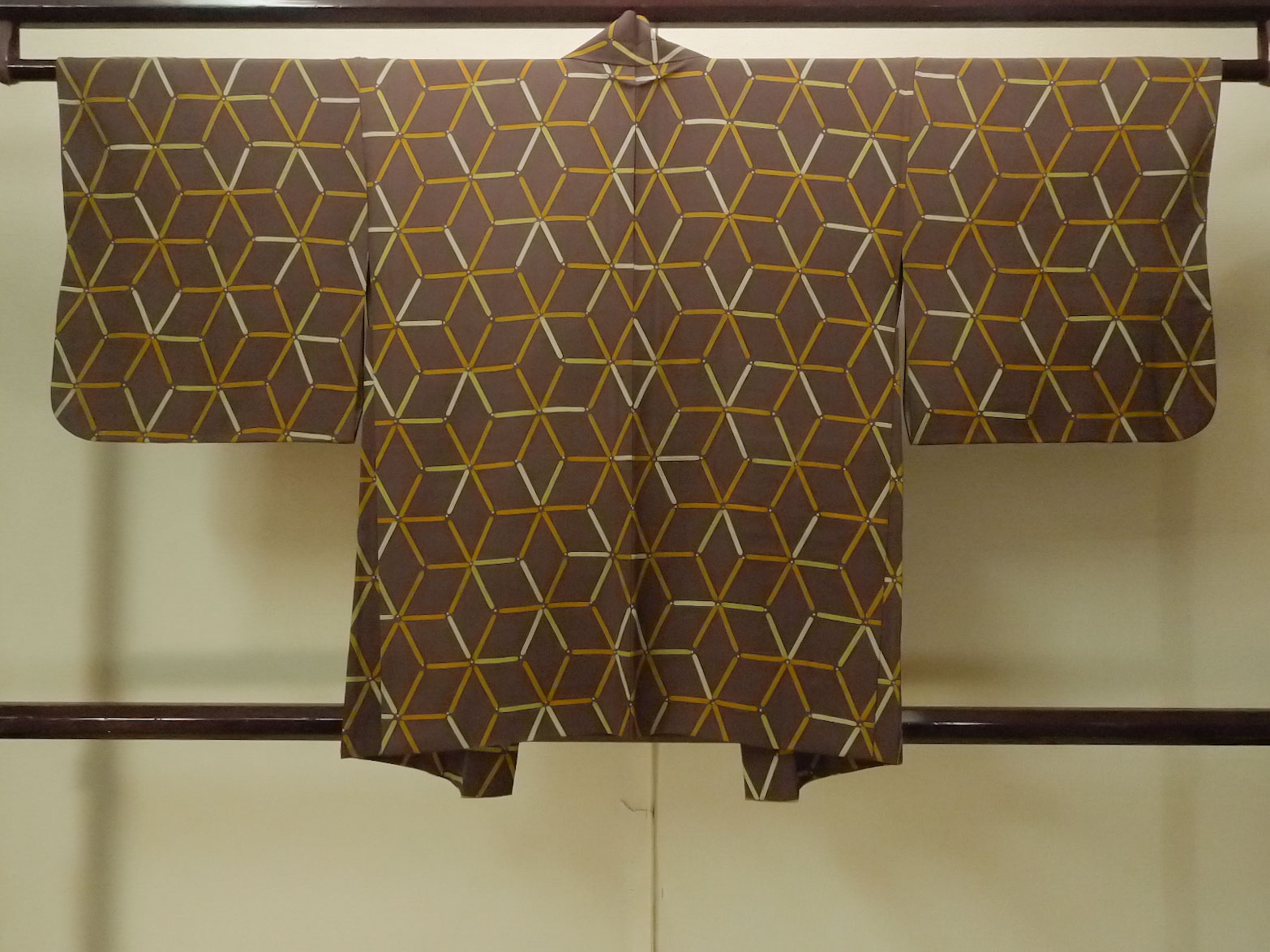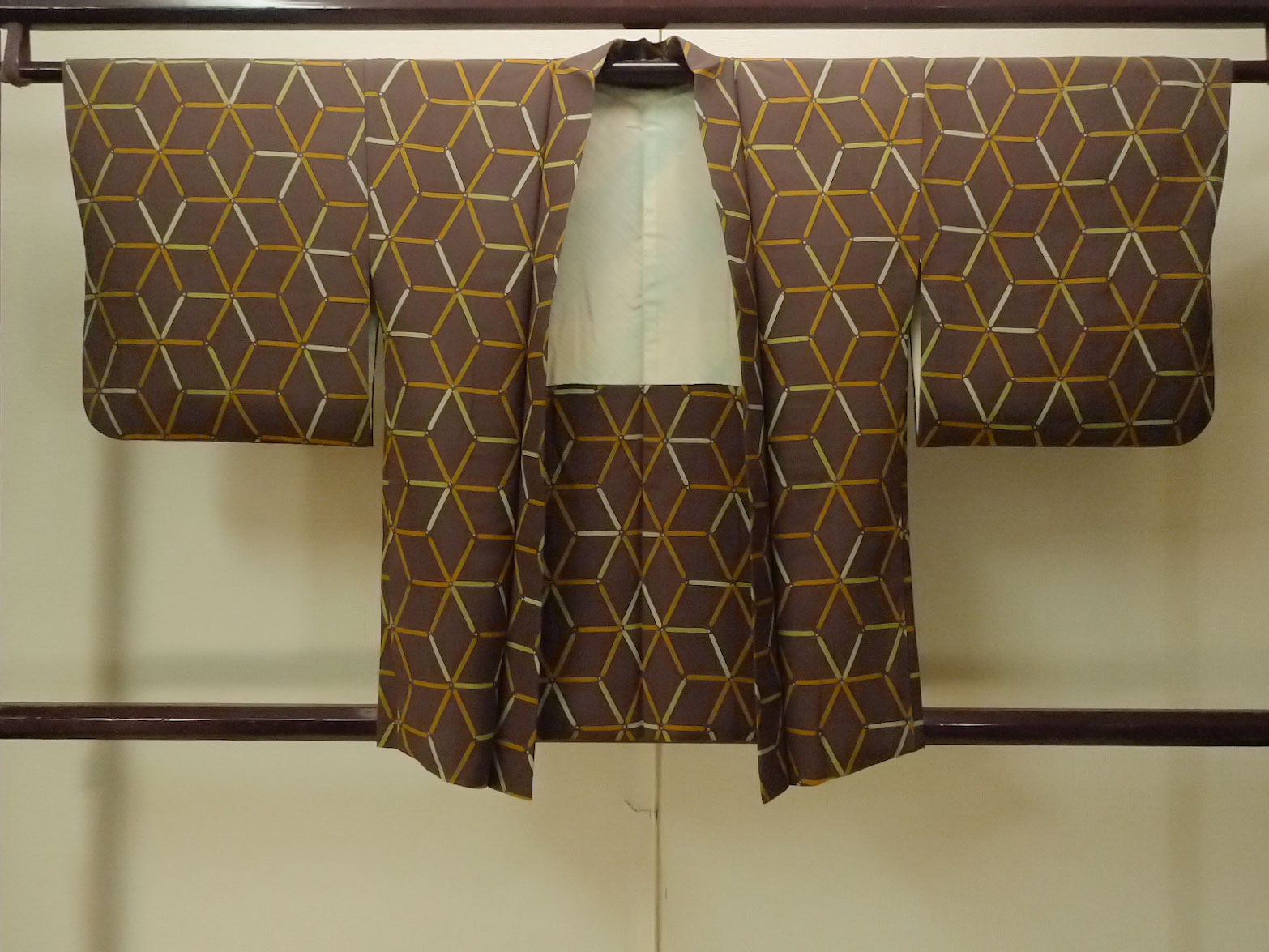P0123T 女性用 羽織 シルク(正絹) 茶色, 麻の葉 【中古】【USED】【リサイクル】 ★★★☆☆【P0123T】