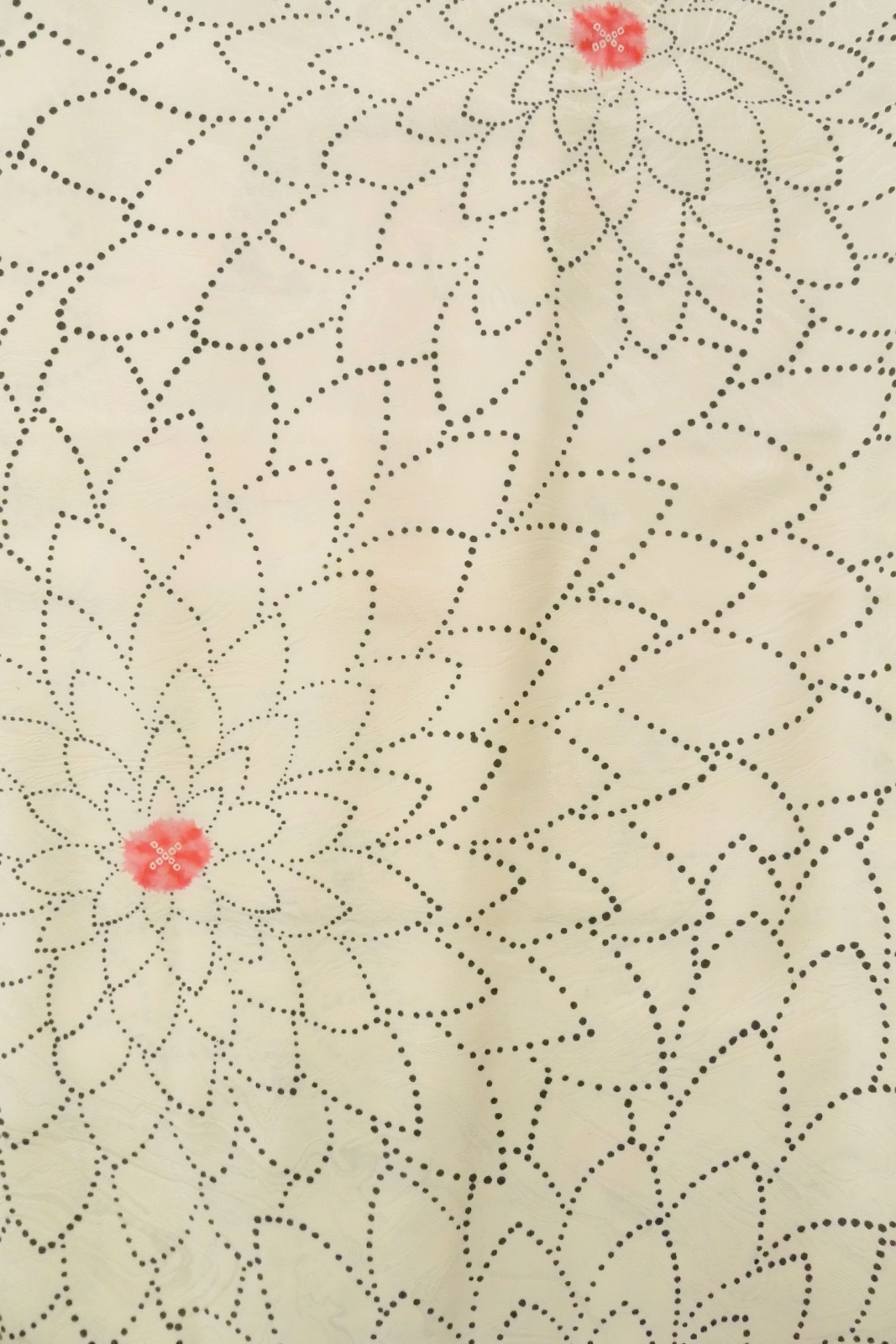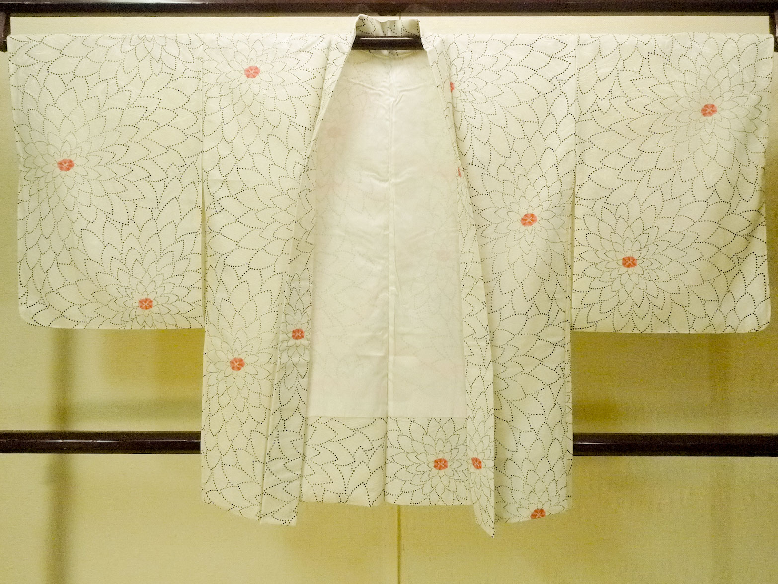 P0123W 女性用 羽織 化繊 白, 菊 【中古】【USED】【リサイクル】 ★★★★☆【P0123W】