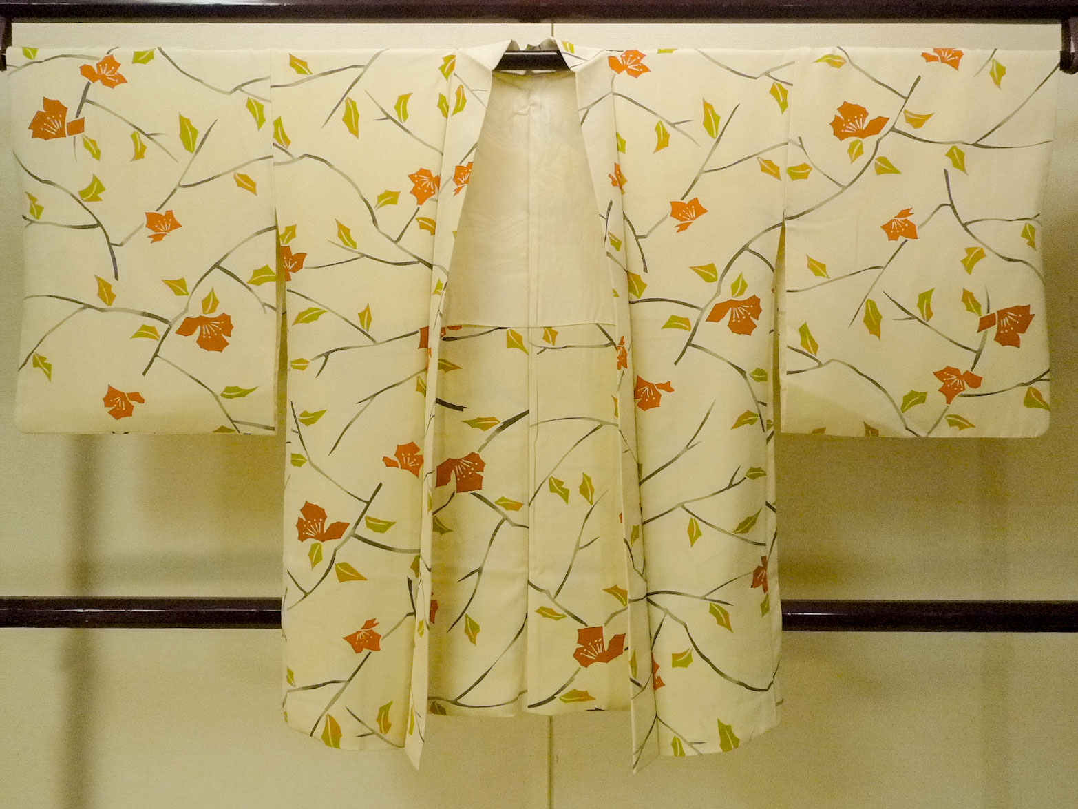 P0123X 女性用 羽織 シルク(正絹) 薄いベージュ, 花 【中古】【USED】【リサイクル】 ★★★☆☆【P0123X】