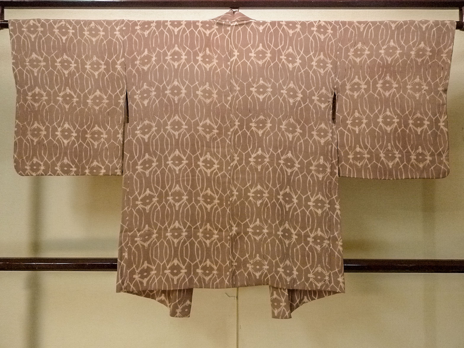 P0123Z 女性用 羽織 シルク(正絹) 淡い茶色, 抽象的模様 【中古】【USED】【リサイクル】 ★★★★☆【P0123Z】