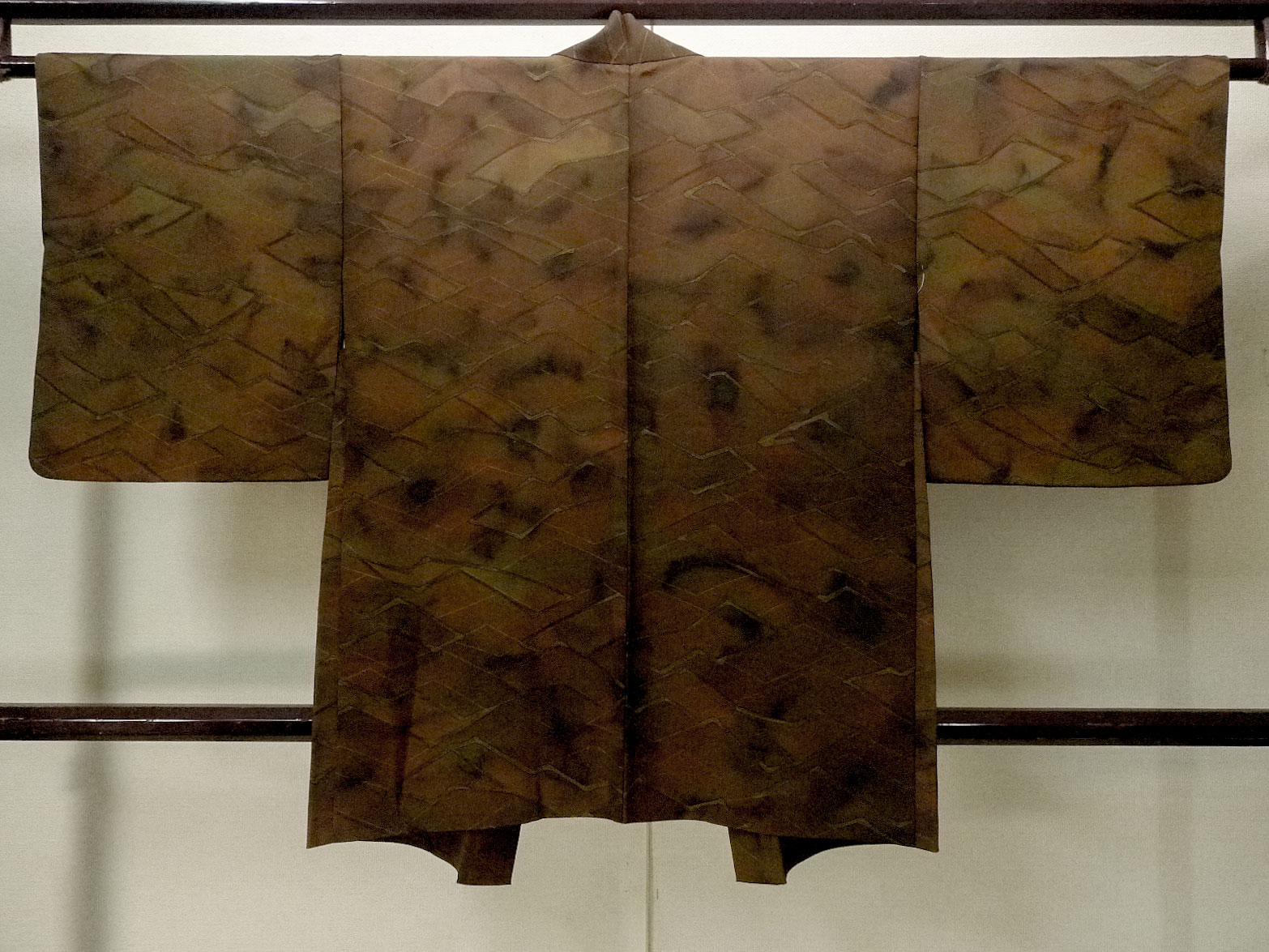 P0124C 女性用 羽織 シルク(正絹) 深い茶色, 抽象的模様 【中古】【USED】【リサイクル】 ★★★★☆【P0124C】 [P0124C]