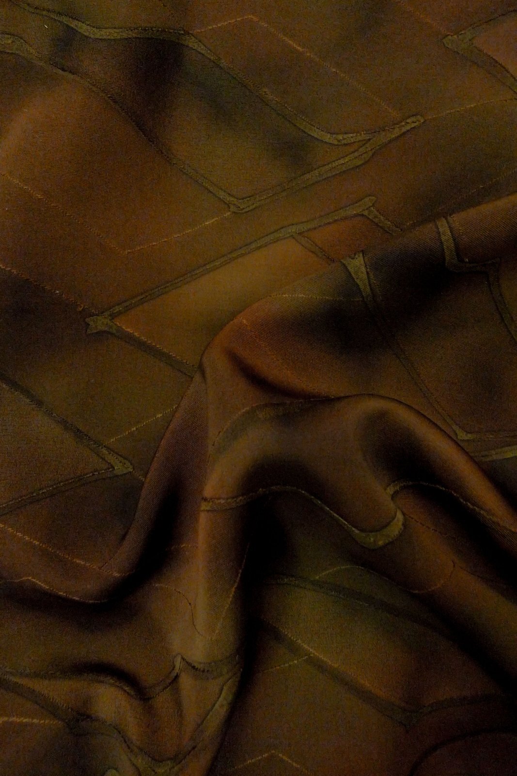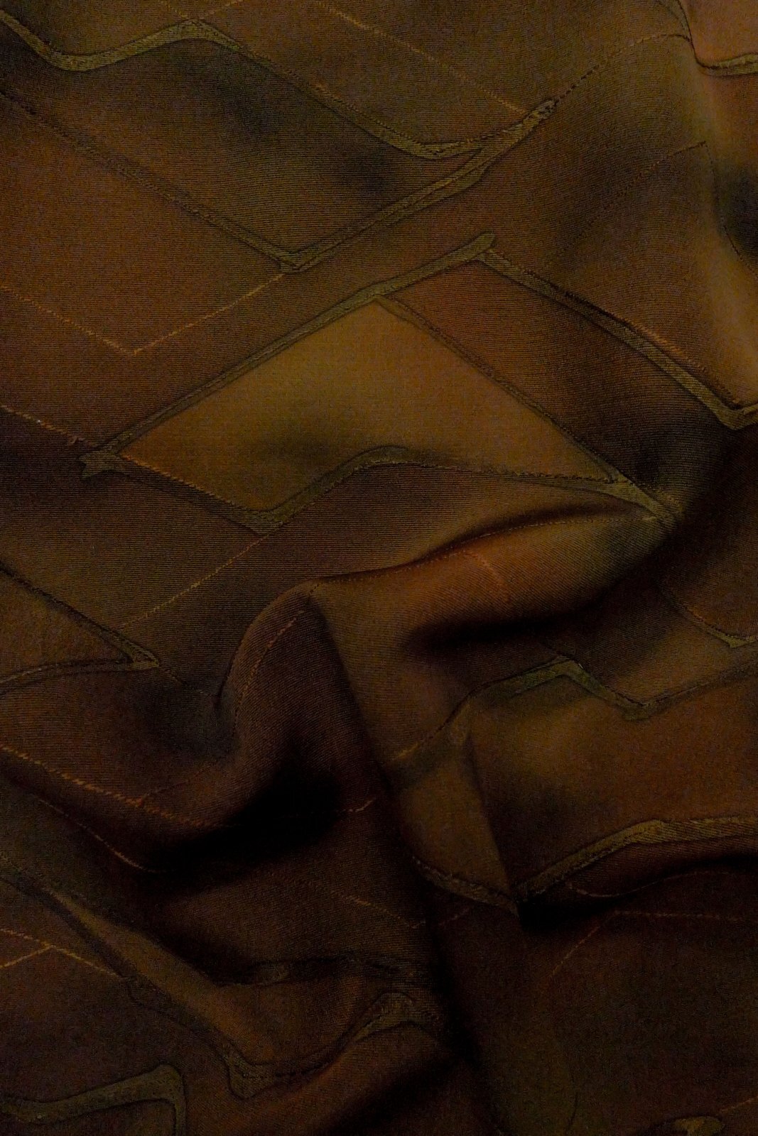 P0124C 女性用 羽織 シルク(正絹) 深い茶色, 抽象的模様 【中古】【USED】【リサイクル】 ★★★★☆【P0124C】