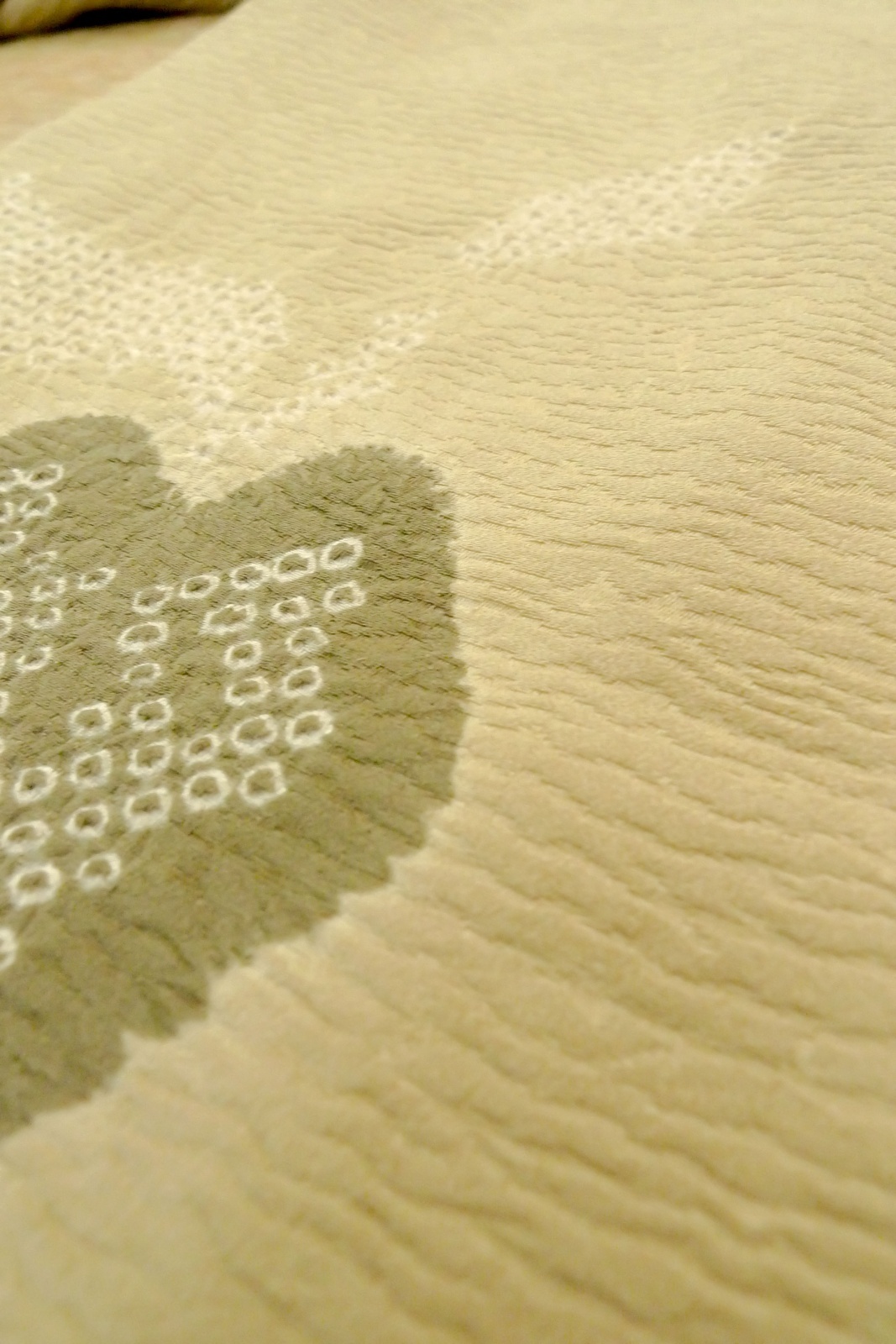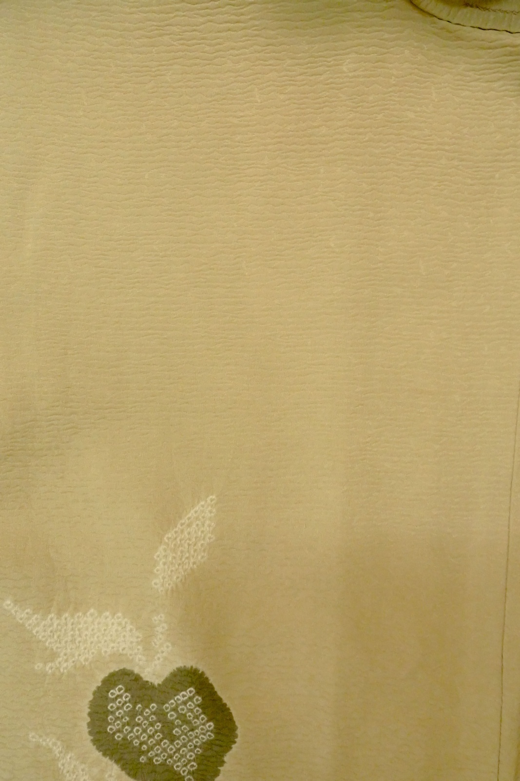 P0124D 女性用 羽織 シルク(正絹) 淡いベージュ, 葉 【中古】【USED】【リサイクル】 ★★☆☆☆【P0124D】