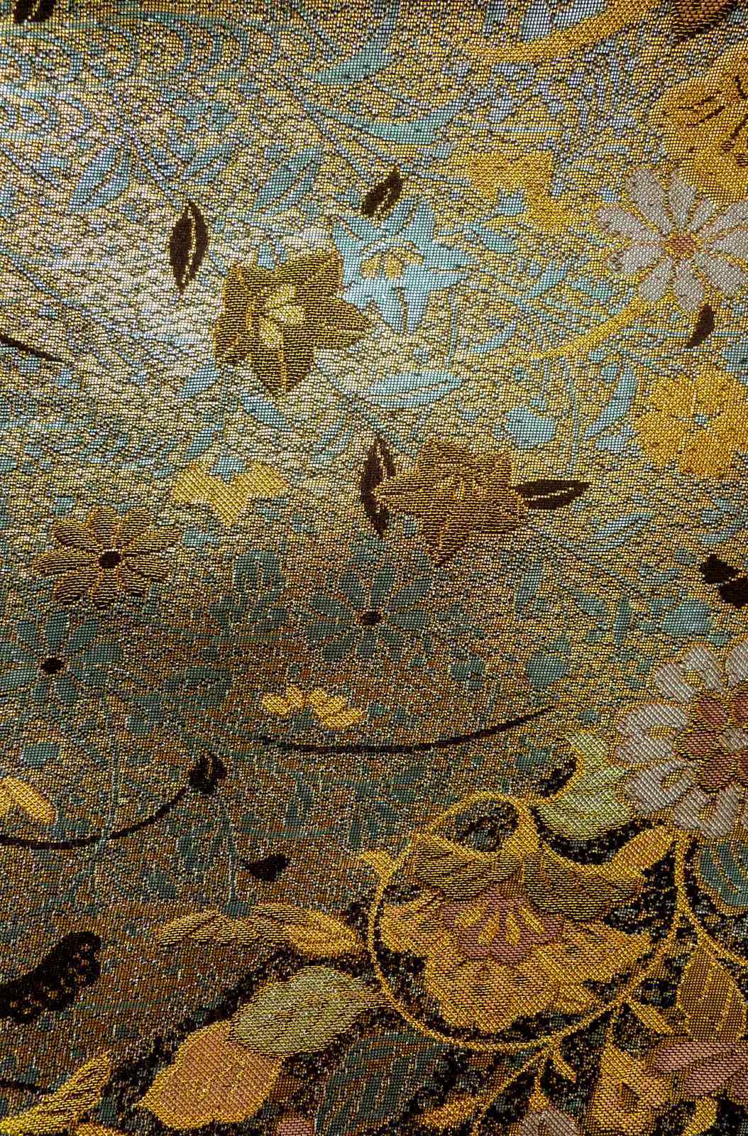 P0206D 袋帯 女性用着物 シルク(正絹) 光沢のある マルチカラー 桜 【中古】 【USED】 【リサイクル】 ★★★★☆ [P0206D]