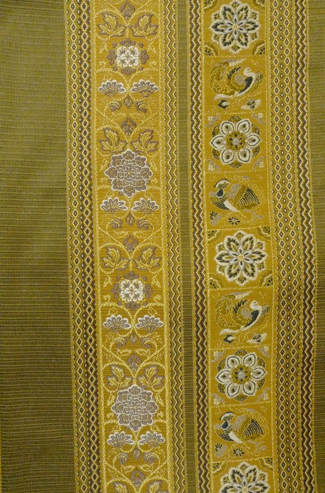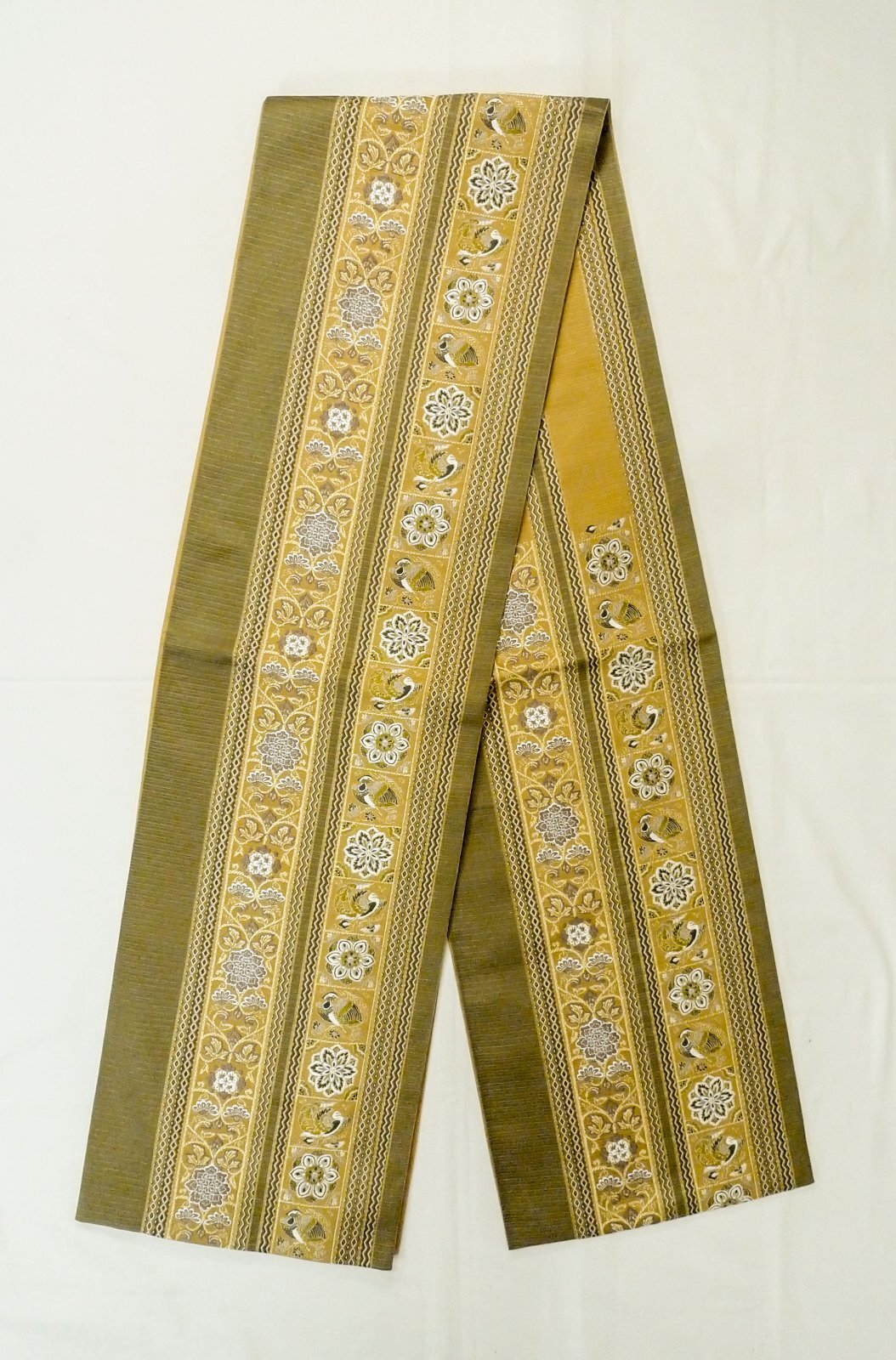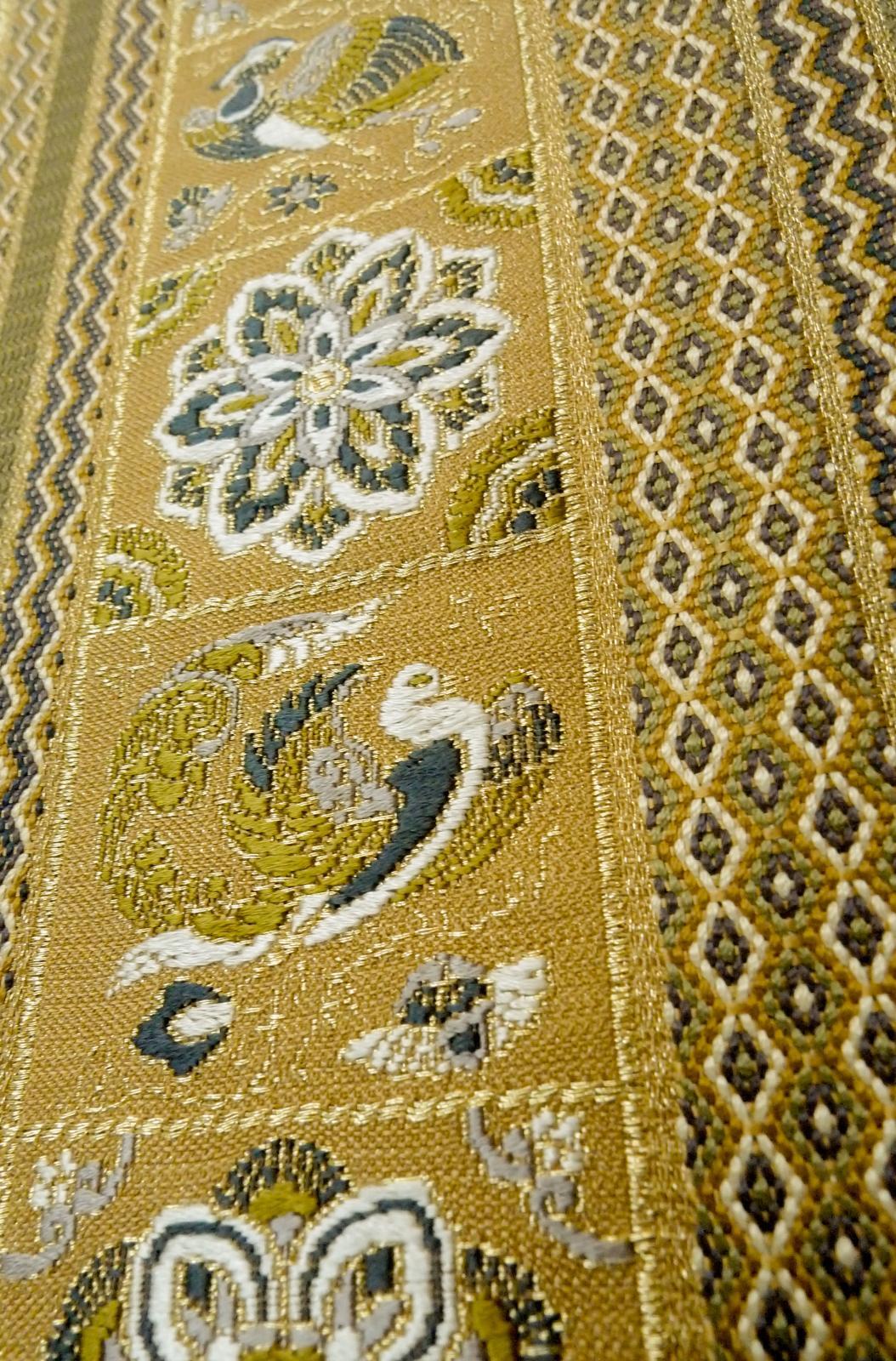 P0206O 袋帯 女性用着物 シルク(正絹) 深い オリーブ 鳳凰 【中古】 【USED】 【リサイクル】 ★★★★☆ [P0206O]