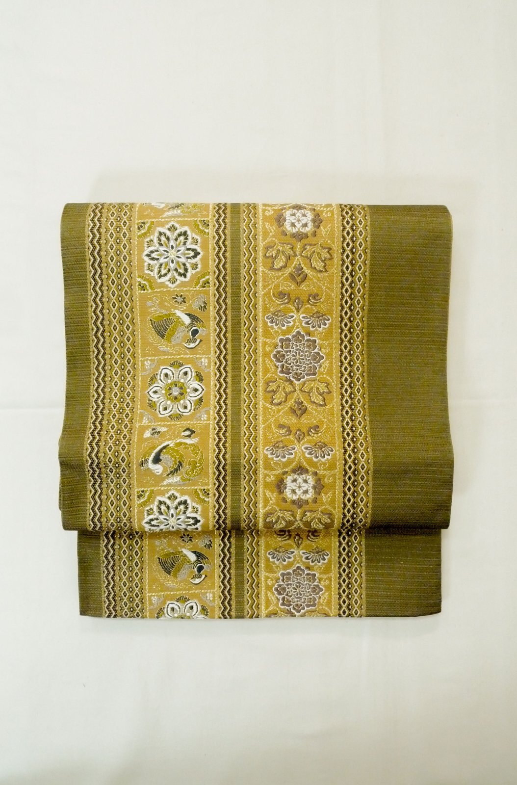 袋帯 シルク(正絹) 深い オリーブ, 鳳凰 【中古】 【USED】 【リサイクル】 (Grade A)