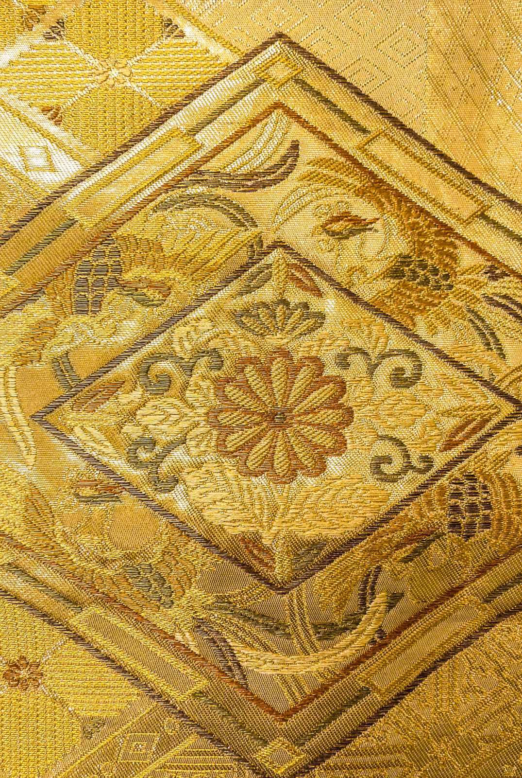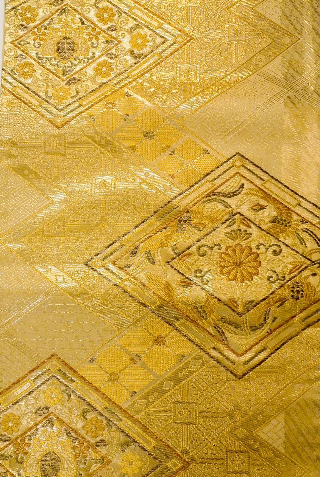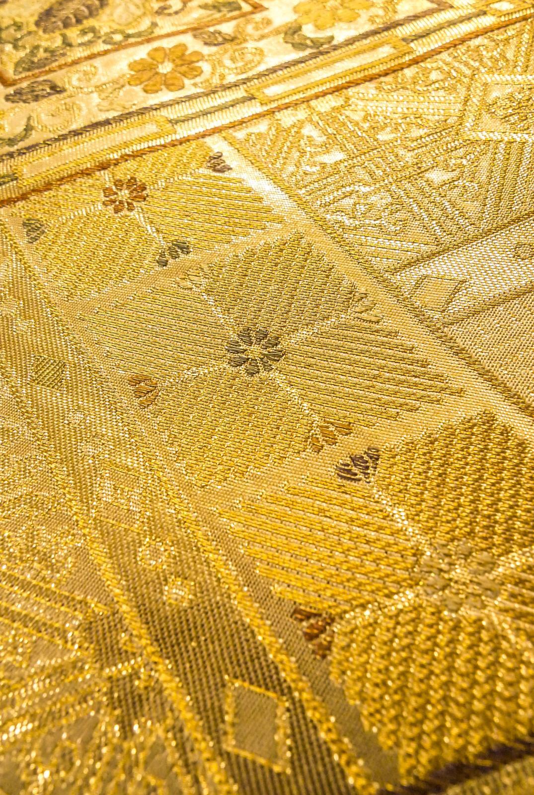 袋帯 純金箔24K九百錦織 シルク(正絹) 光沢のある 金色, 菊 【中古】 【USED】 【リサイクル】 (Grade B)