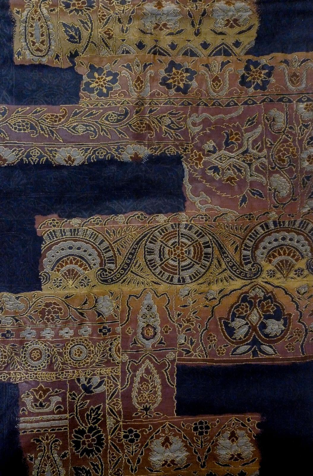 P0206W 袋帯 女性用着物 シルク(正絹) 深い 藍 唐花 【中古】 【USED】 【リサイクル】 ★★★☆☆ [P0206W]