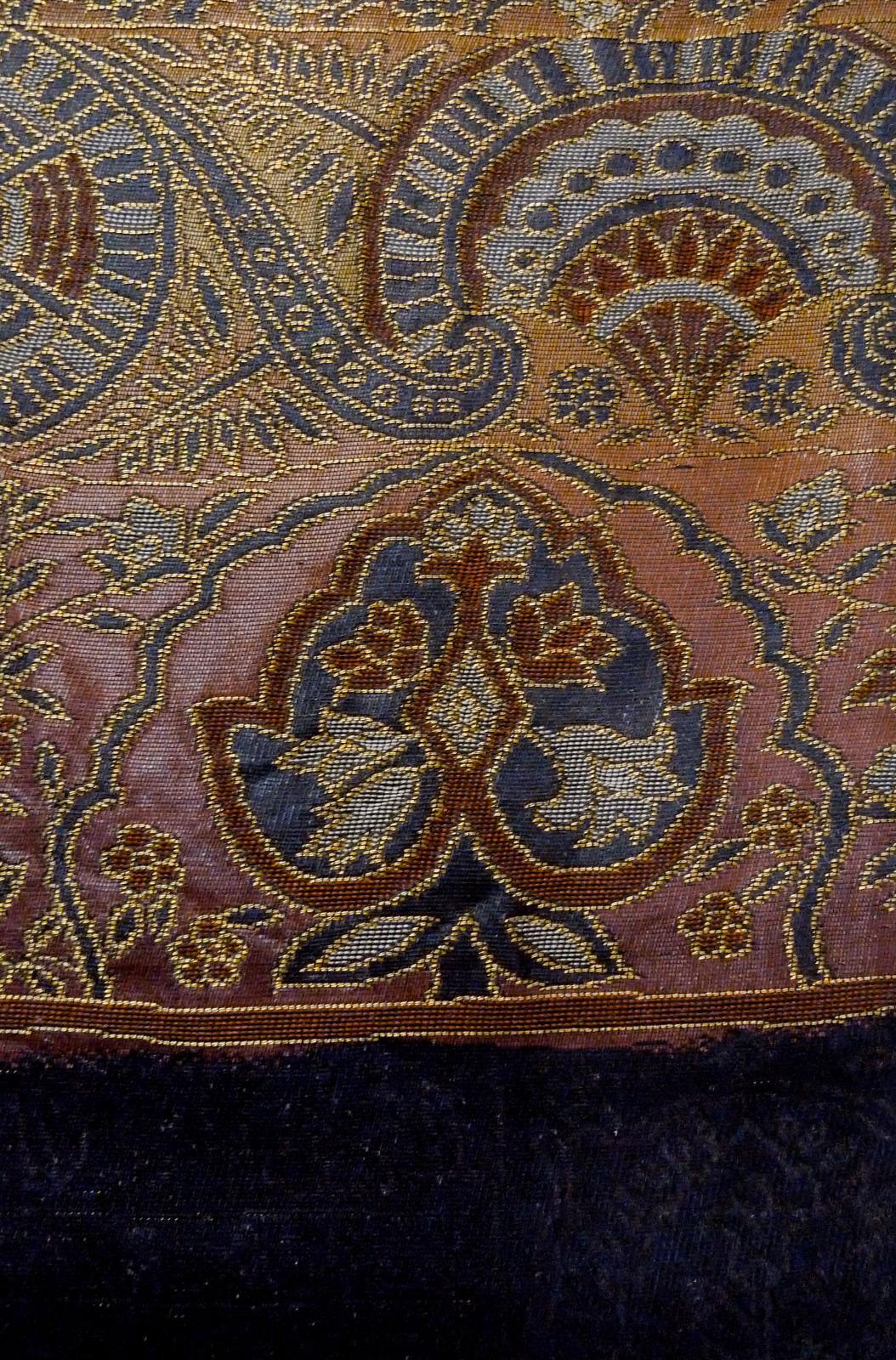 袋帯 染み少しあり シルク(正絹) 深い 藍, 唐花 【中古】 【USED】 【リサイクル】 (Grade B)