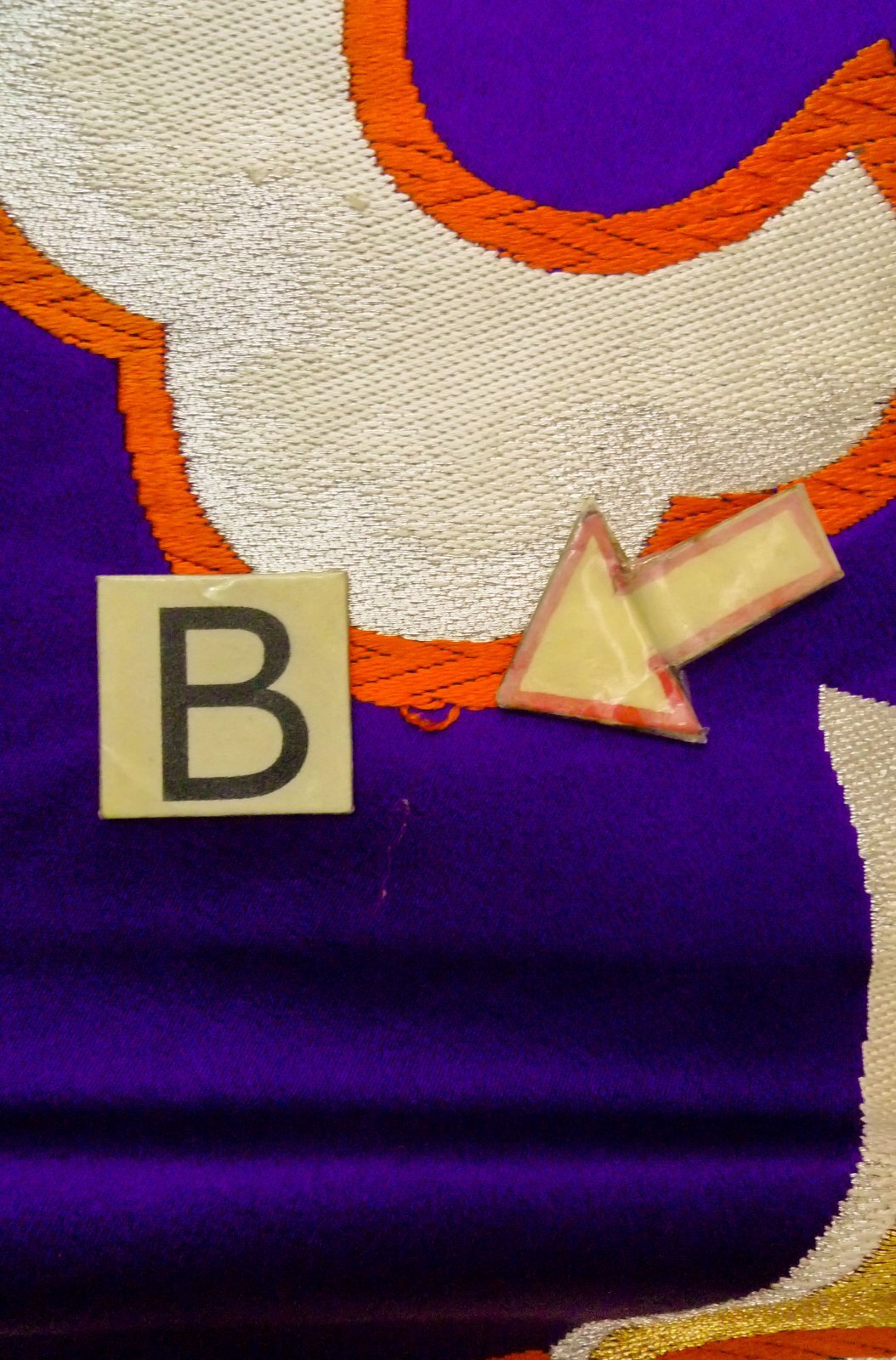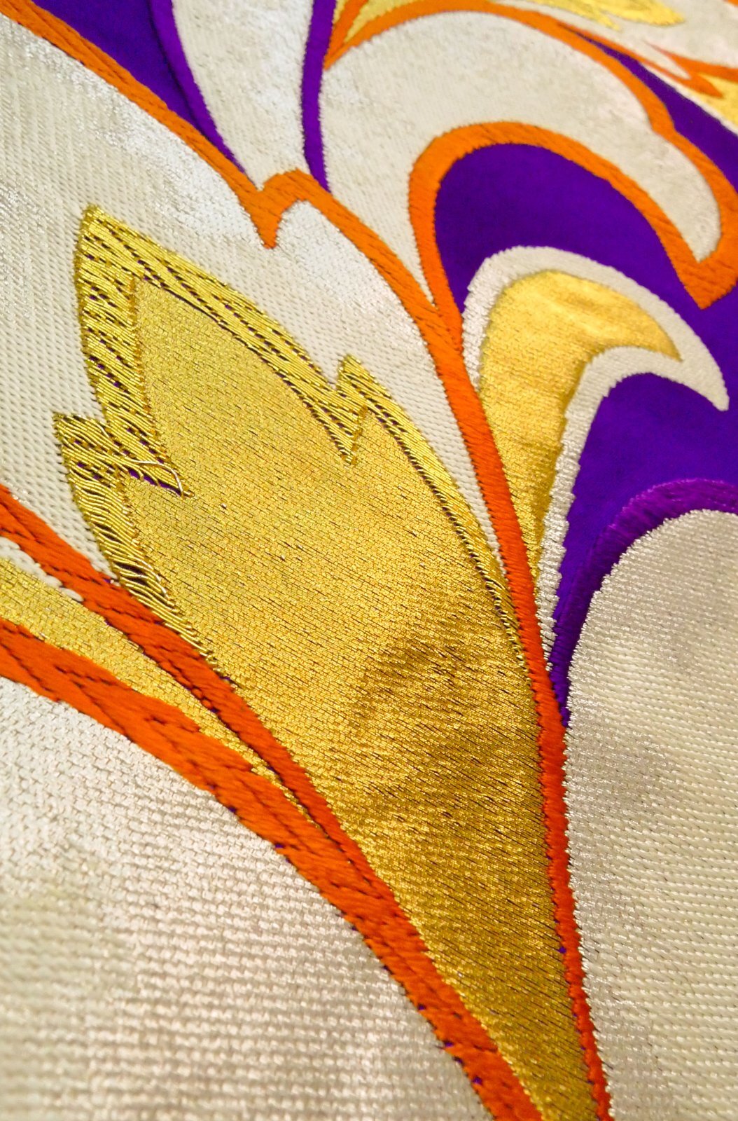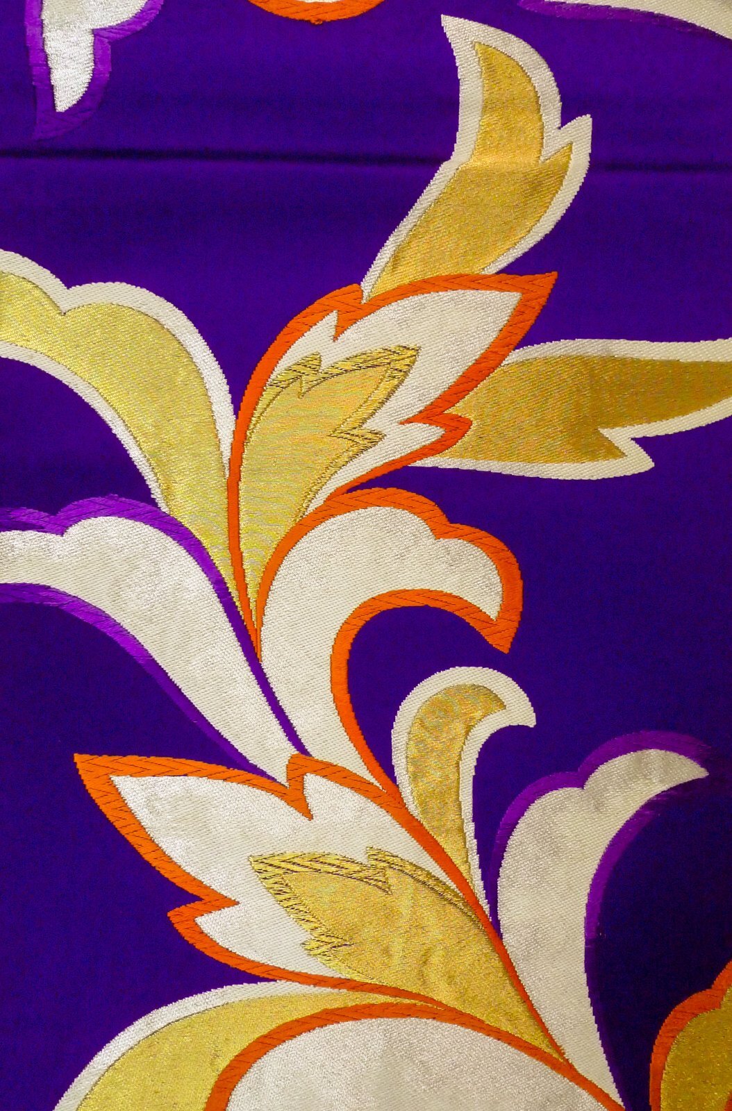P0207B 袋帯 女性用着物 シルク(正絹) 鮮やか 紫色 唐草 【中古】 【USED】 【リサイクル】 ★★☆☆☆ [P0207B]