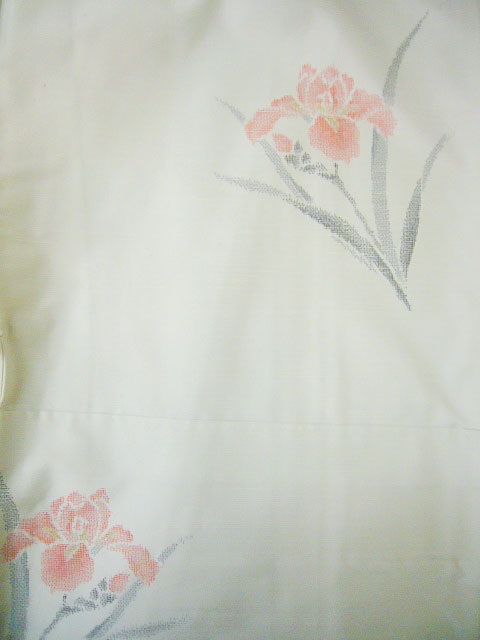 I1130W 紬 女性用着物 シルク(正絹) オフ ホワイト, あやめ 【中古】 【USED】 【リサイクル】 ★★★★☆ [I1130W]