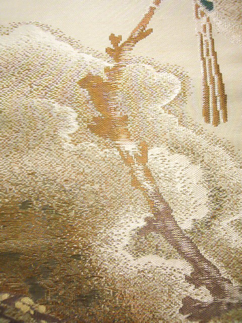 J0911V 半幅帯 女性用着物 シルク(正絹) スモーキーな 葉 , リバーシブル【中古】 【USED】 【リサイクル】 ★★☆☆☆