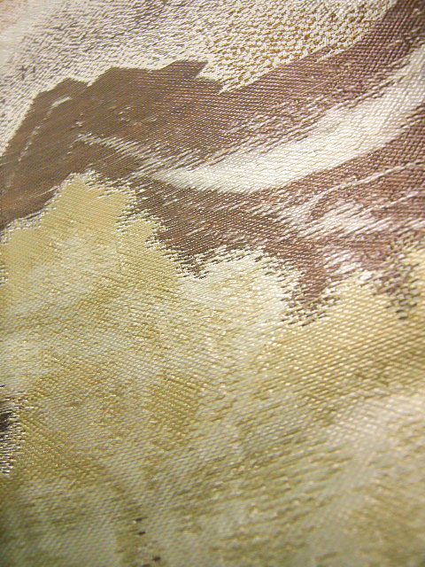 J0911V 半幅帯 女性用着物 シルク(正絹) スモーキーな 葉 , リバーシブル【中古】 【USED】 【リサイクル】 ★★☆☆☆ [J0911V]