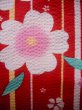 J1126N 子供用 女性用着物 浴衣、さくらんぼ柄 綿 赤, 縞 【中古】 【USED】 【リサイクル】 ★★★☆☆