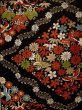 K0224L 袋帯 女性用着物 シルク(正絹) 黒 花 【中古】 【USED】 【リサイクル】 ★★★☆☆ [K0224L]