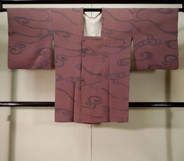 K1203K 道行 女性用着物 シルク(正絹) 淡い ローズ, 流水 【中古】 【USED】 【リサイクル】 ★★★☆☆ [K1203K]