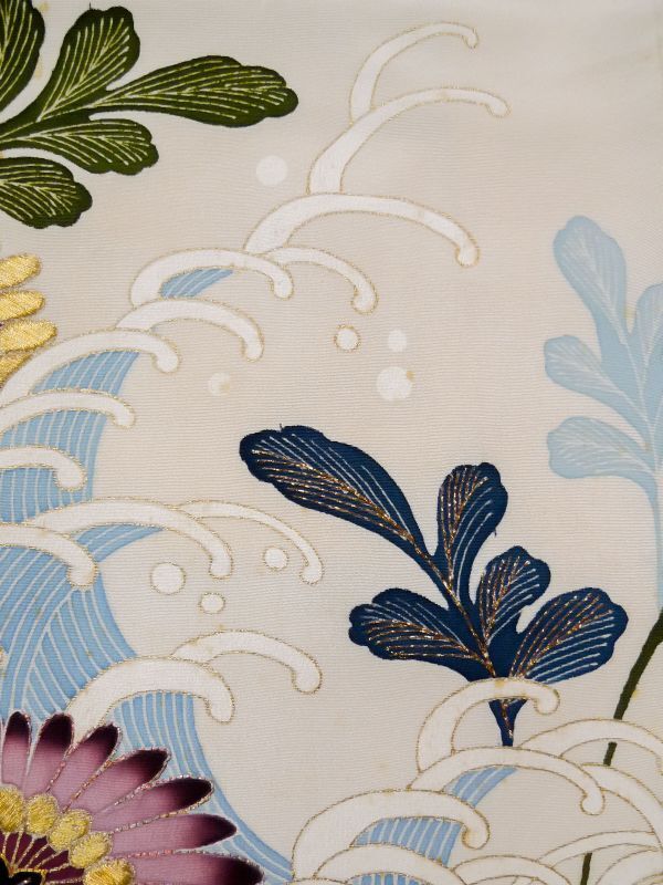 L0519J 訪問着 女性用着物 滝 シルク(正絹) オフ ホワイト, 花 【中古】 【USED】 【リサイクル】 ★★☆☆☆ [L0519J]