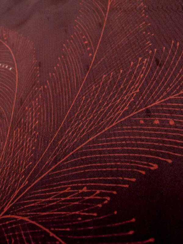L0914P Mint 羽織 女性用着物 シルク(正絹) えんじ, 葉 【中古】 【USED】 【リサイクル】 ★★★★☆