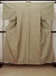 L1019U 織 女性用着物 シルク(正絹) 淡い 茶色み 黄緑色, 抽象的模様 【中古】 【USED】 【リサイクル】 ★★☆☆☆